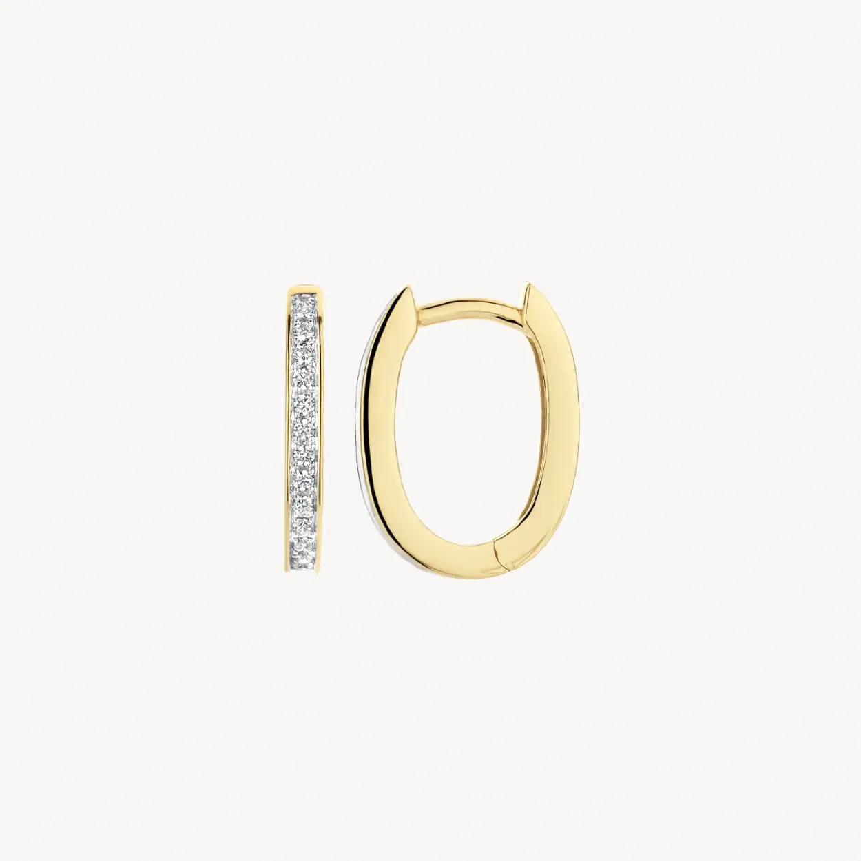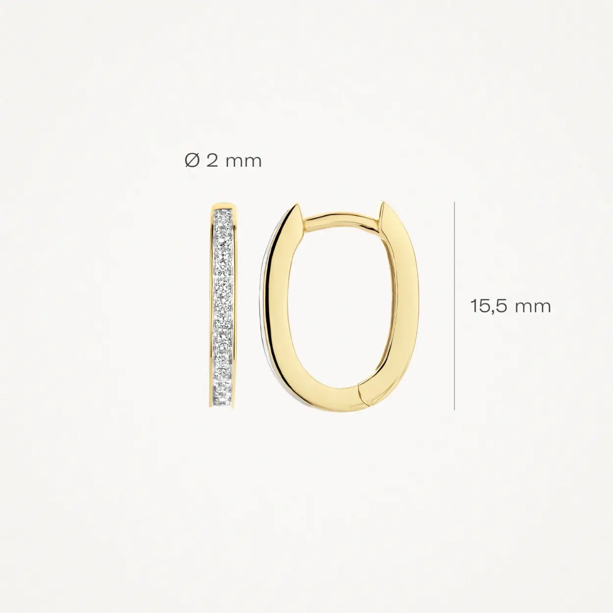 Deze elegante oorringen met witte zirkonia hebben een ovalen vorm. Ze zijn gemaakt van 14k geelgoud en hebben een dikte van 1,9 mm en een hoogte van 15,4 mm. Prachtig op zichzelf, maar ook heel mooi in combinatie met oorbedels en andere (oor)sieraden uit onze collectie.