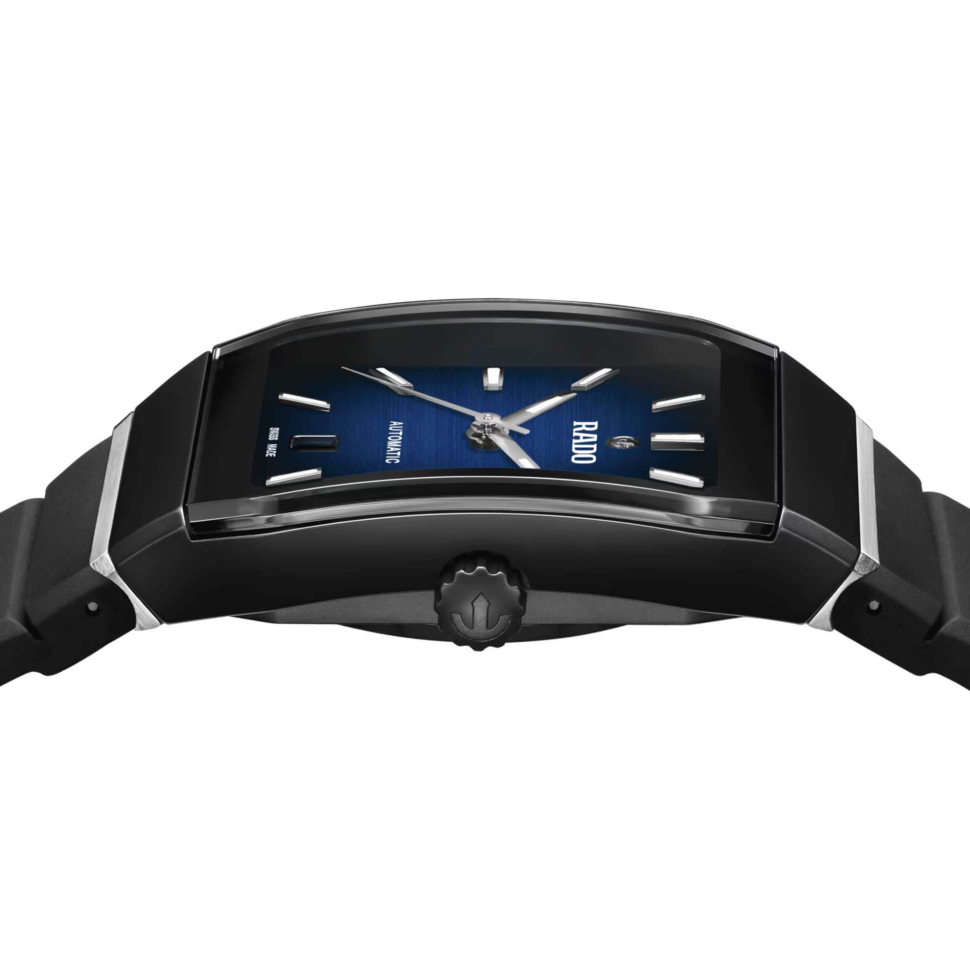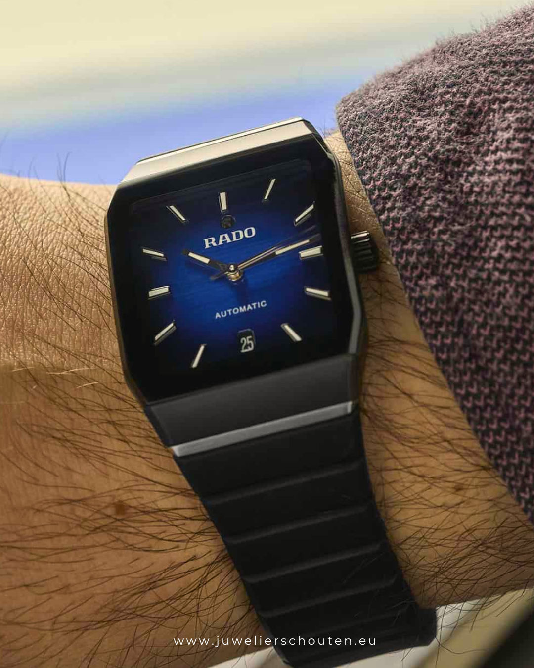 Ontdek de perfecte harmonie tussen comfort en esthetiek met de Rado Anatom Automatic. Aangedreven door het Rado kaliber R766 uurwerk en uitgerust met een Nivachron™ antimagnetische spiraalveer, garandeert dit horloge nauwkeurige tijdwaarneming met moeiteloze elegantie. Het horloge is ontworpen voor duurzaamheid en verfijning en beschikt over een zwarte matte hightech keramische lunette en een cilindrisch saffierglas met antireflectiecoating aan de binnenkant. De transparante roestvrijstalen achterkant biedt een kijkje in het betoverende binnenwerk van het horloge. De wijzerplaat vertoont een betoverende blauw-zwarte overgang, wat diepte en allure toevoegt aan het ontwerp van het horloge. Ontworpen voor comfort de hele dag, is de zwarte rubberen band vastgemaakt met een geborstelde roestvrijstalen 3-voudige sluiting en een zwarte matte hightech keramische behuizing. Het horloge is waterbestendig tot 50 meter. Of u nu nieuwe horizonnen verkent of een statement maakt tijdens een formeel evenement, dit horloge is uw perfecte metgezel en staat voor tijdloze elegantie en precisie.