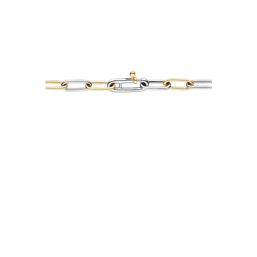Vier iconisch design met deze TI SENTO closed forever armband 2936BI. Een krachtig samenspel van goudkleurig vergulde en gepolijste zilveren schakels creëert een opvallend tweekleurig silhouet, onderscheidend en toch moeiteloos draagbaar. Vervaardigd uit hoogwaardig 925 sterling zilver grijpt elke sculpturale schakel naadloos in de volgende, als een tijdloze uitdrukking van eenheid en kracht. Dit statement-sieraad geeft elke outfit een architectonische uitstraling, of het nu alleen wordt gedragen of gecombineerd in een stack. Afgewerkt met een veilige sluiting is het nikkelvrij, hypoallergeen en ontworpen om altijd bij je te blijven.