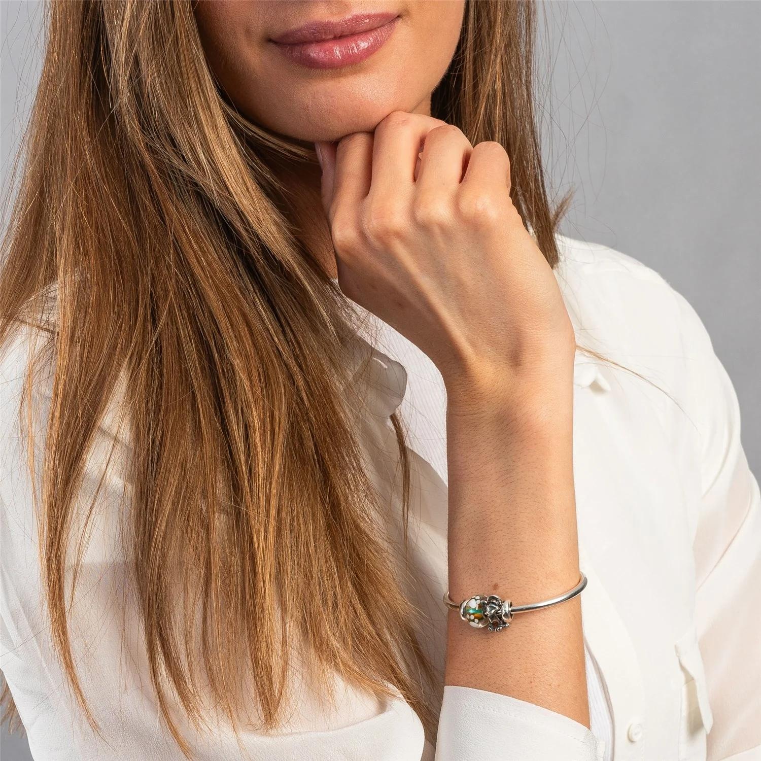 Snoezig en knuffelig. Sterk en gedurfd. Kijk uit wereld, hier kom ik! De kraal kan als driegatskraal gebruikt worden.