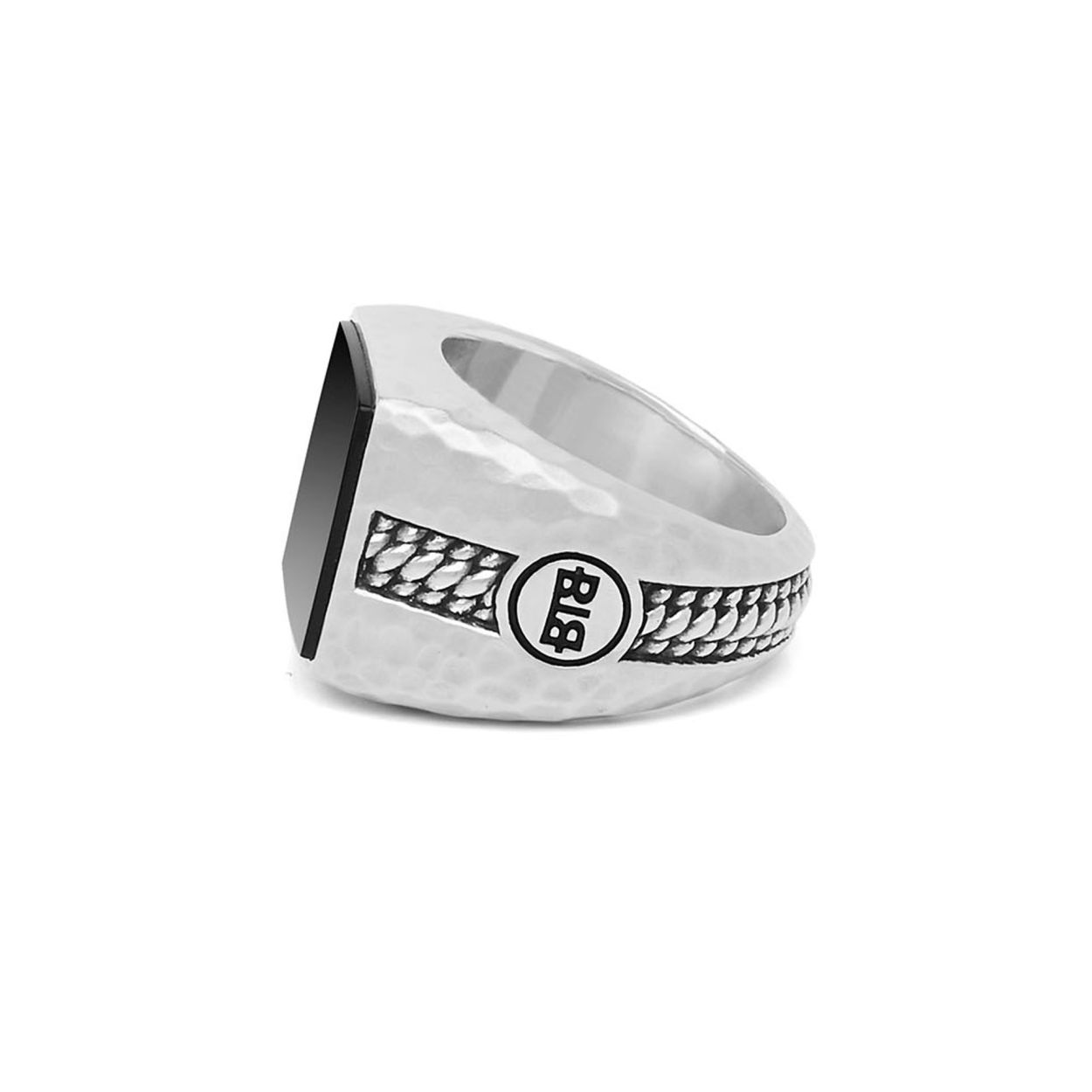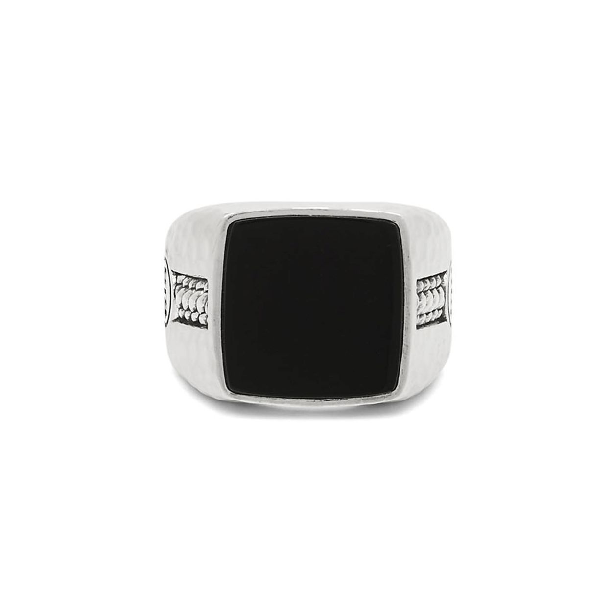 Buddha To Buddha 1e gehalte zilveren ring met 'gehamerde' zijkant en bovenop een zwarte -vierkante-  onyx steen. Model: 051-Tangguh Signet Onyx in maat 20