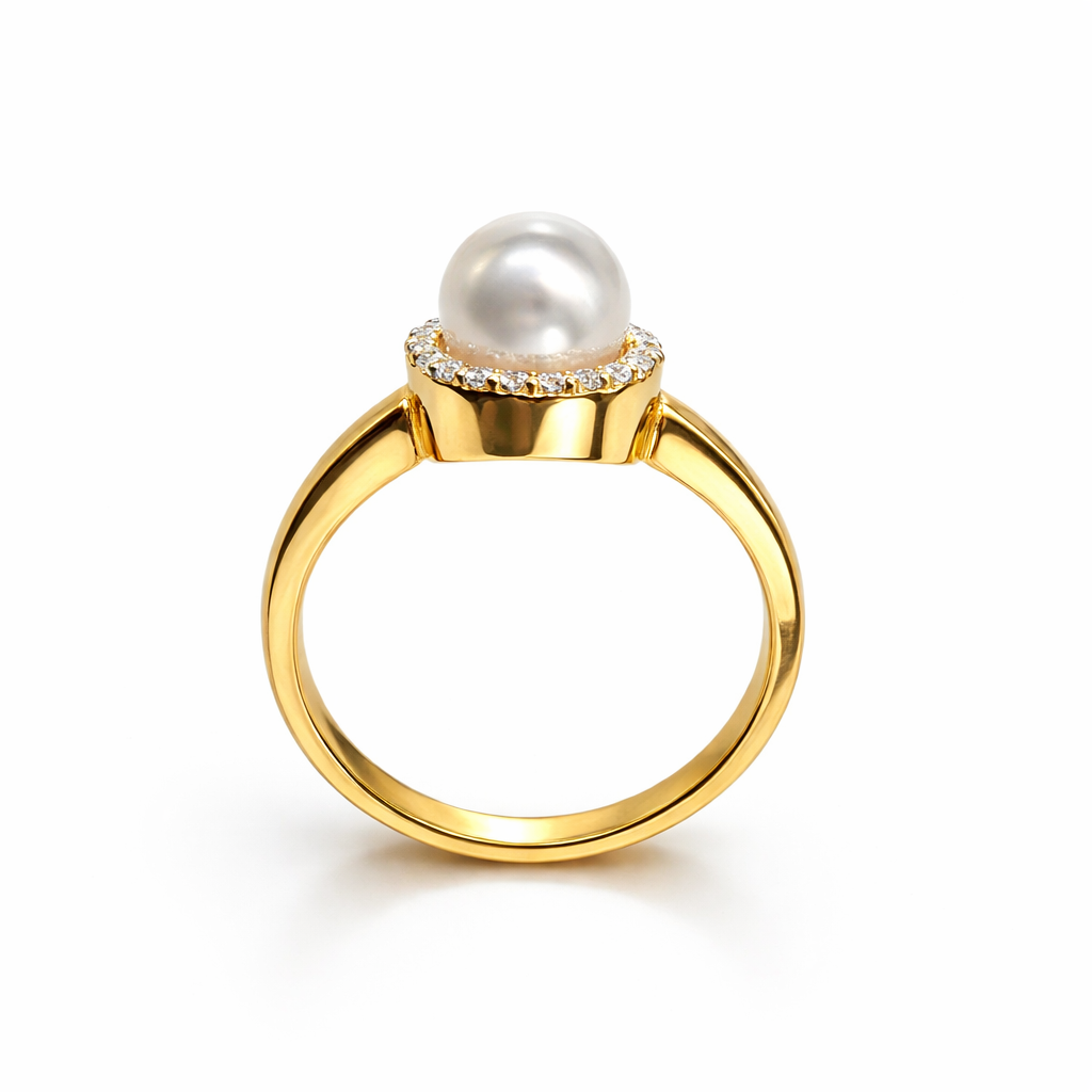 Gouden ring met parel 0.125 crt maat 56