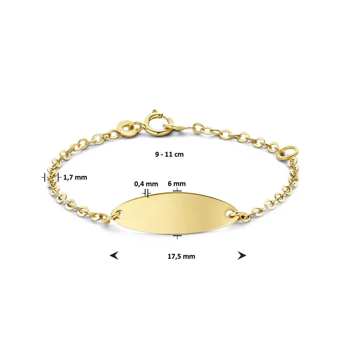 9k geel kleurig graveerarmband met een schakelbreedte van 1.7mm en een plaat van 6x17.5mm met een dikte van 0.4mm. Plaat is 6mm