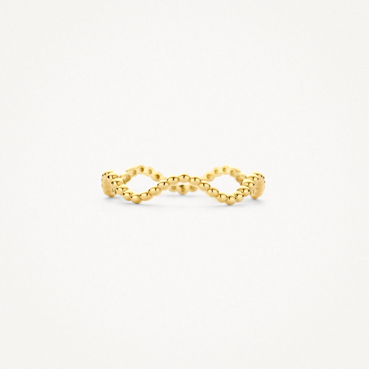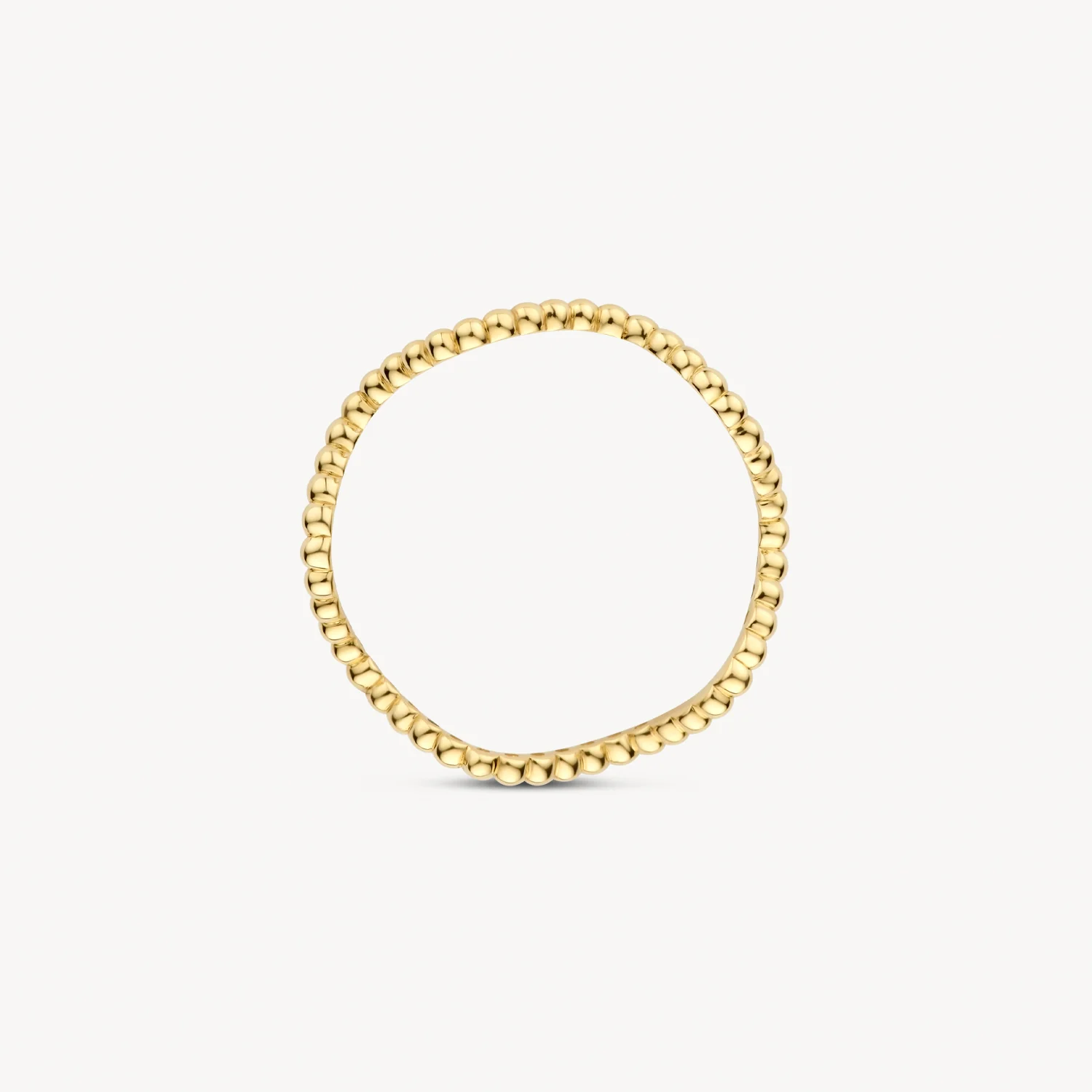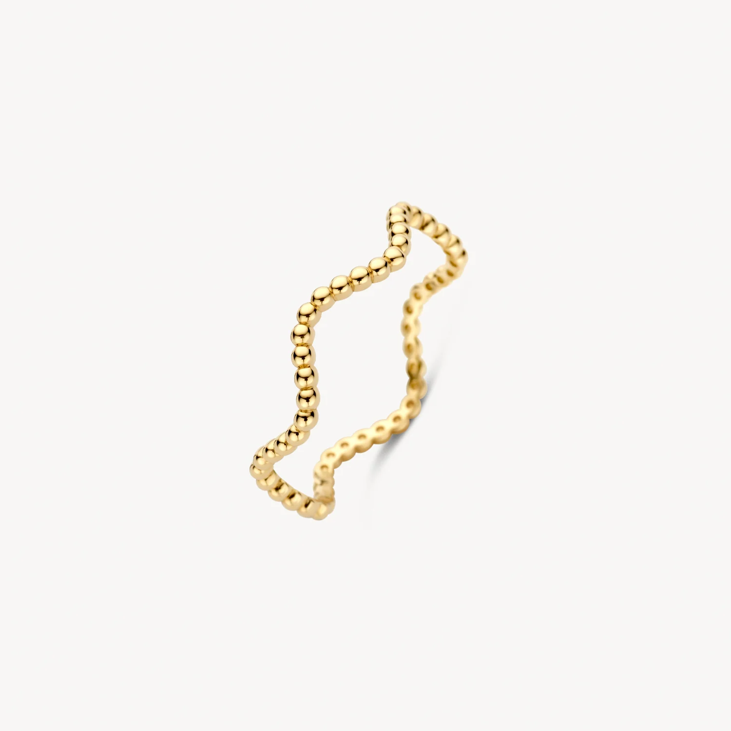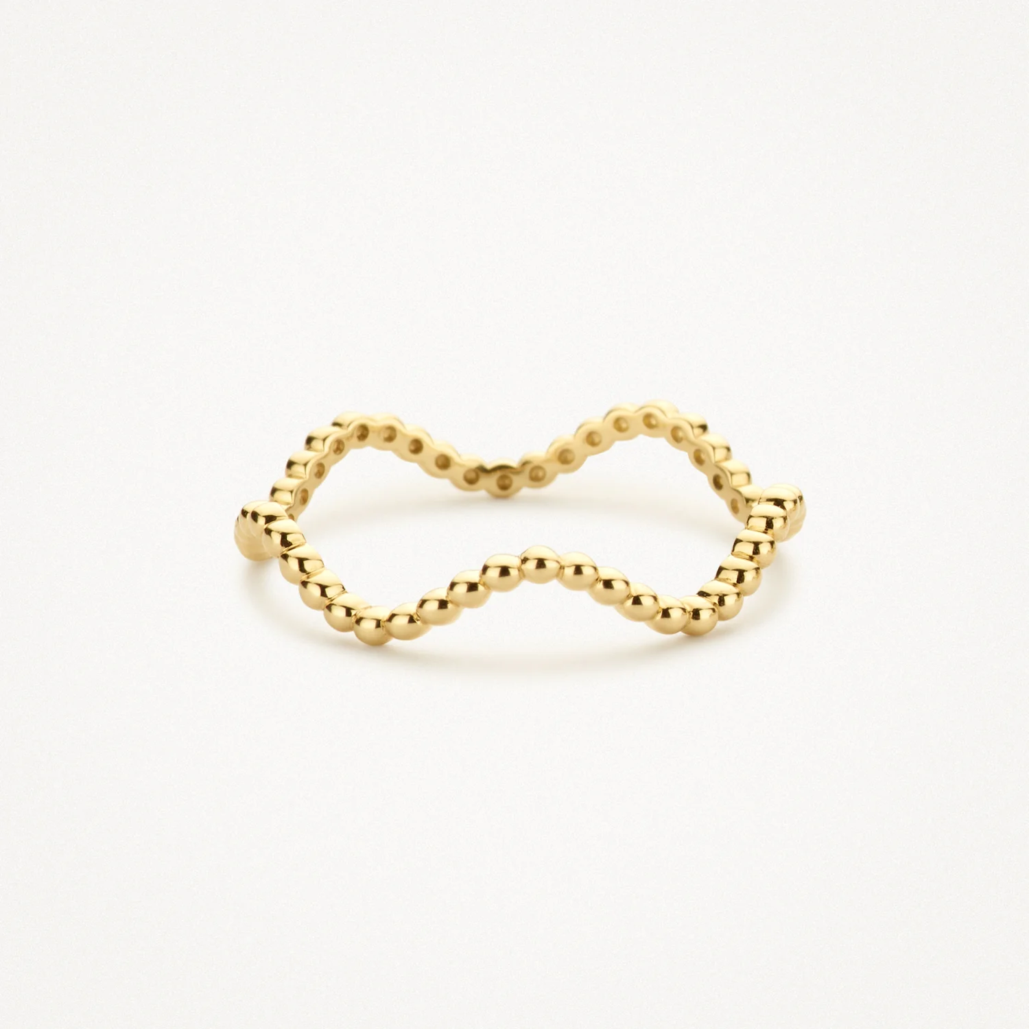 Het golvende ontwerp met bolletjes maakt een echte eyecatcher van deze 14k geelgouden ring. De band heeft een doorsnede van 1,3 mm. De ring is opvallend genoeg om alleen te dragen maar ook heel mooi te matchen met andere (aanschuif)ringen uit onze collectie.