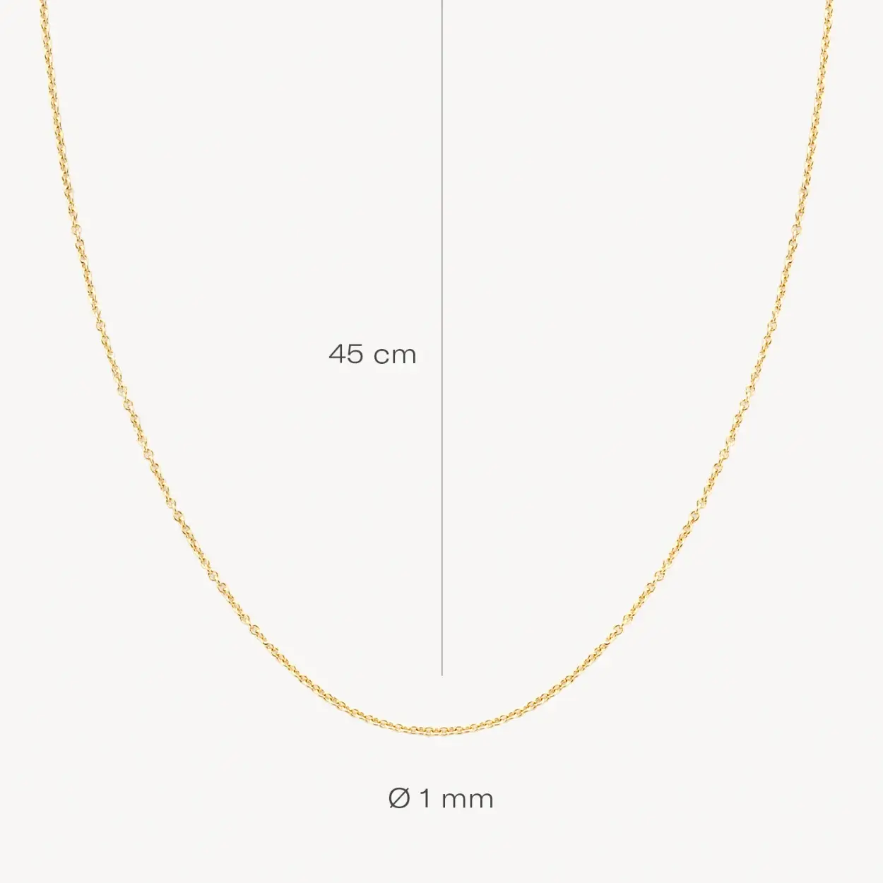 Never out of style. Dit 14 karaats geel gouden ankercollier heeft een lengte van 45 centimeter. De breedte van de schakels is 0,7 millimeter waardoor het collier een subtiel, tijdloos en stijlvol uiterlijk heeft . De ketting is geschikt voor alle hangers van Blush en heeft een 14 karaat gouden karabijn sluiting.