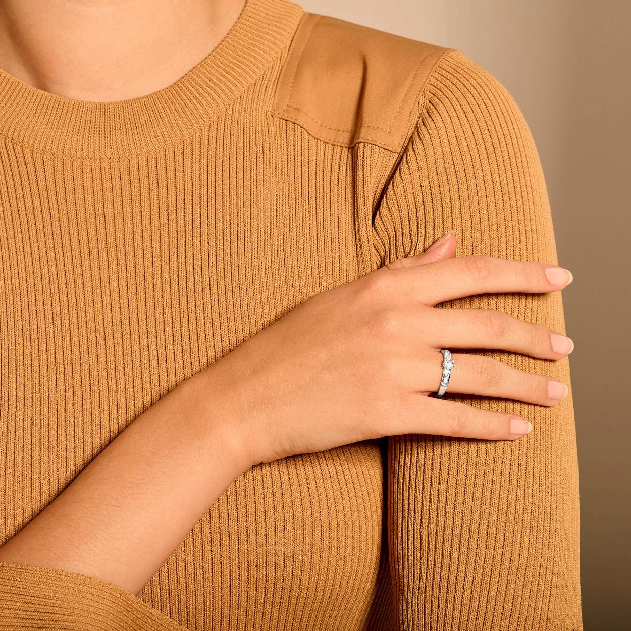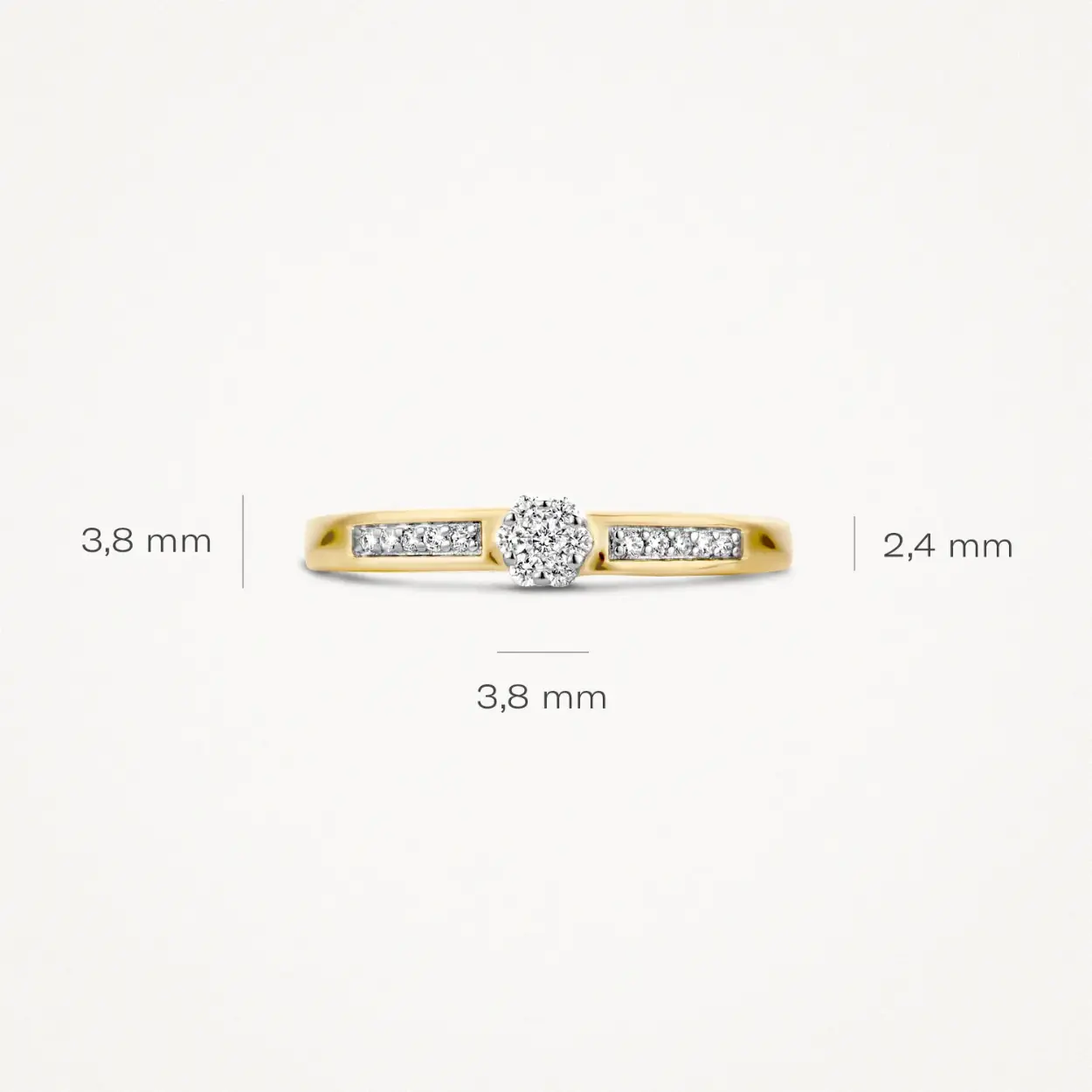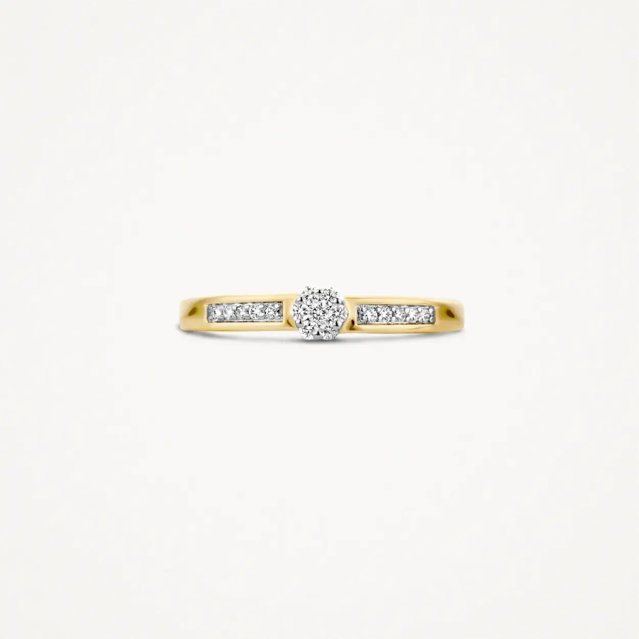 Briljant geslepen diamanten sieren deze ring van 14k witgoud. De grote diamant heeft een karaatgewicht 0,12, de kleine diamanten zijn gezet in de band van de ring die een doorsnee heeft van 2,4 mm. Prachtig op zichzelf of samen met andere ringen uit onze collectie.