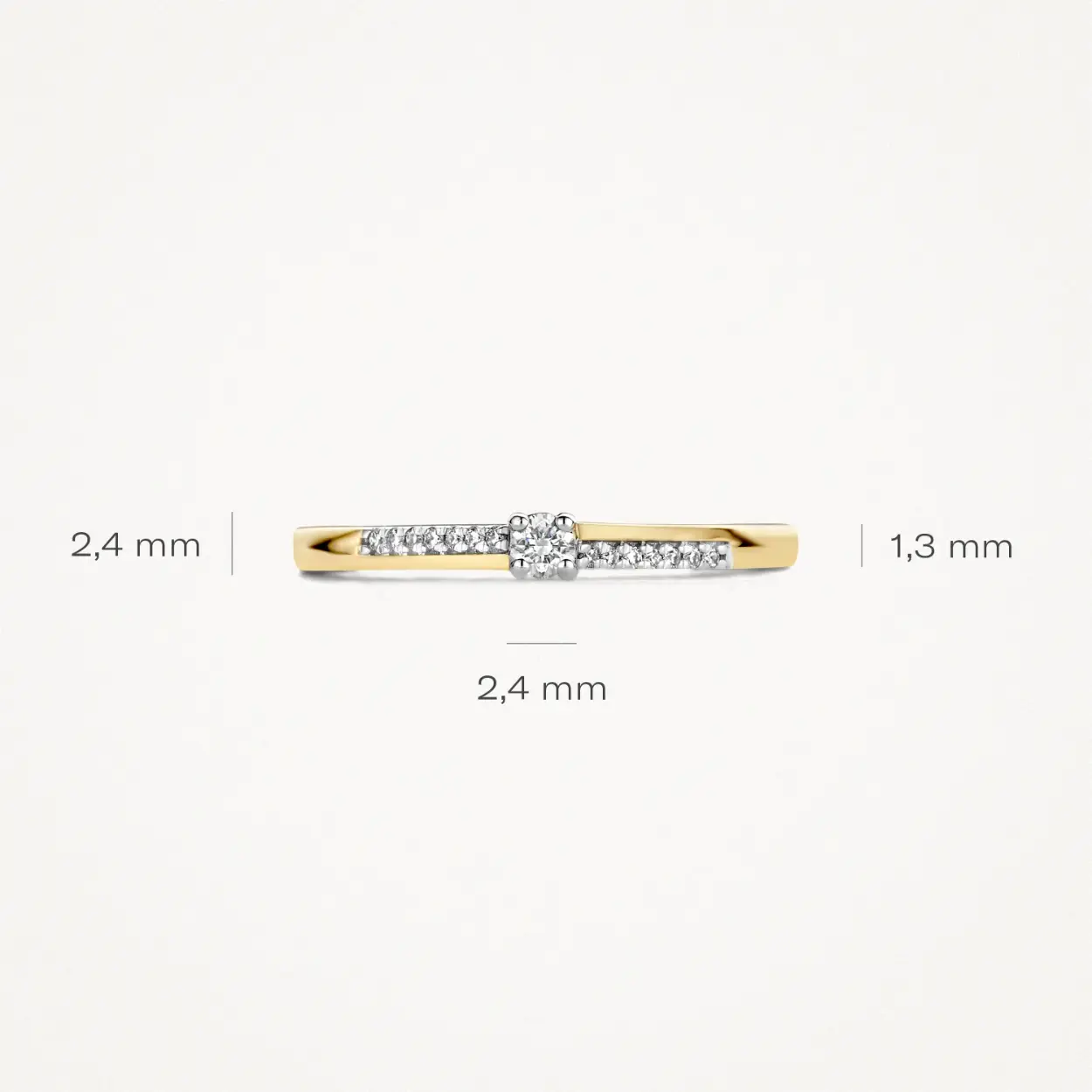 Deze prachtige Blush Diamonds ring heeft een totaal van 0,06 karaat diamanten, met een 0,04 karaat G/SI bicolor steen als blikvanger. De ring is elegant en subtiel, perfect voor dagelijks gebruik of speciale gelegenheden. Draag hem alleen voor een minimalistische look of stapel hem met andere ringen voor een trendy uitstraling. Maak je outfit compleet met deze tijdloze ring!