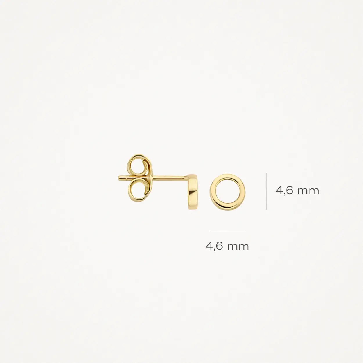 Deze cirkelvormige oorknoppen hebben een doorsnede van 4,6 mm en zijn gemaakt van 14k geelgoud. Het eenvoudige ontwerp doet het goed op zichzelf maar ook in combinatie met andere (oor)sieraden uit onze collectie.