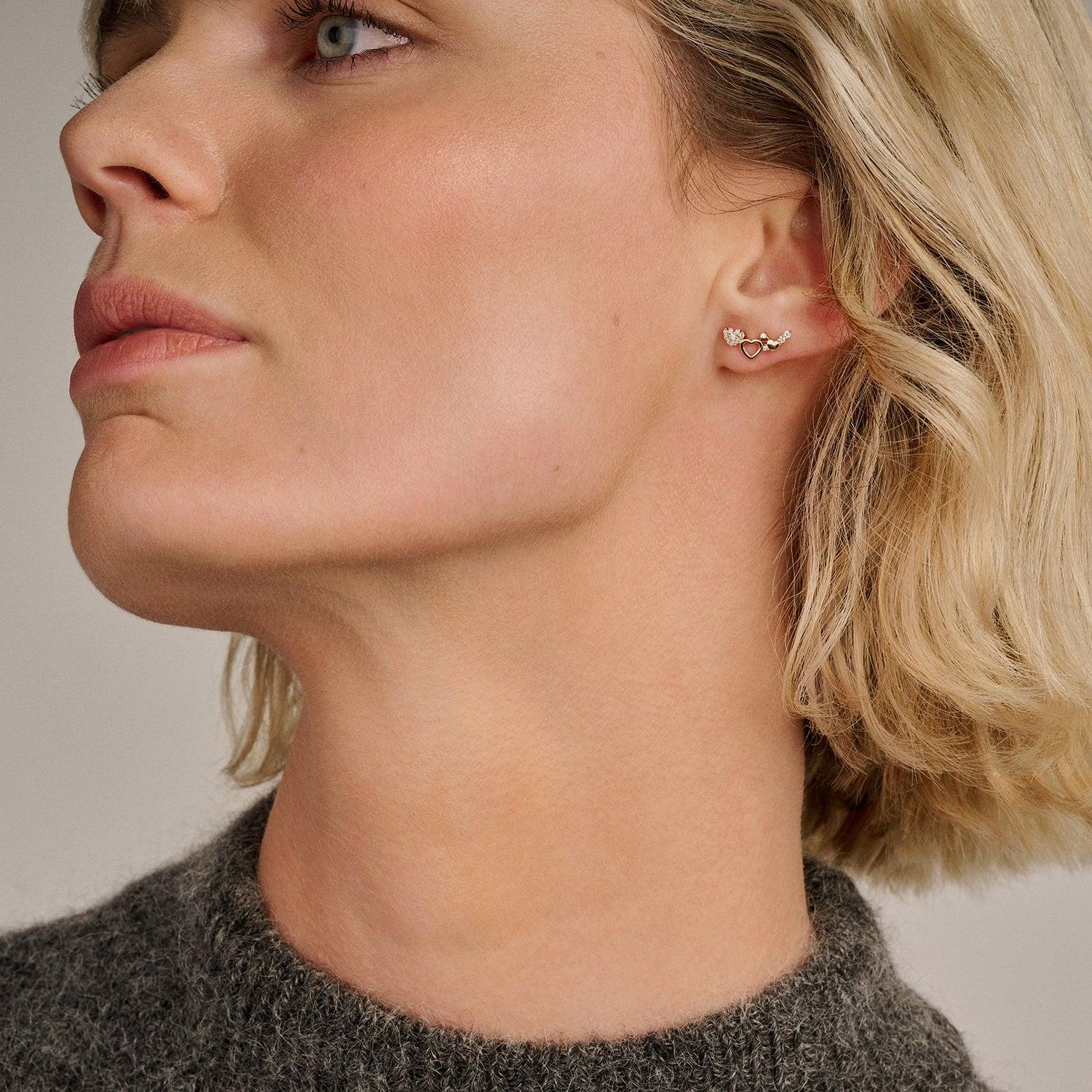 Blush geelgouden oorstekers hart  met zirkonia | 7376YZI