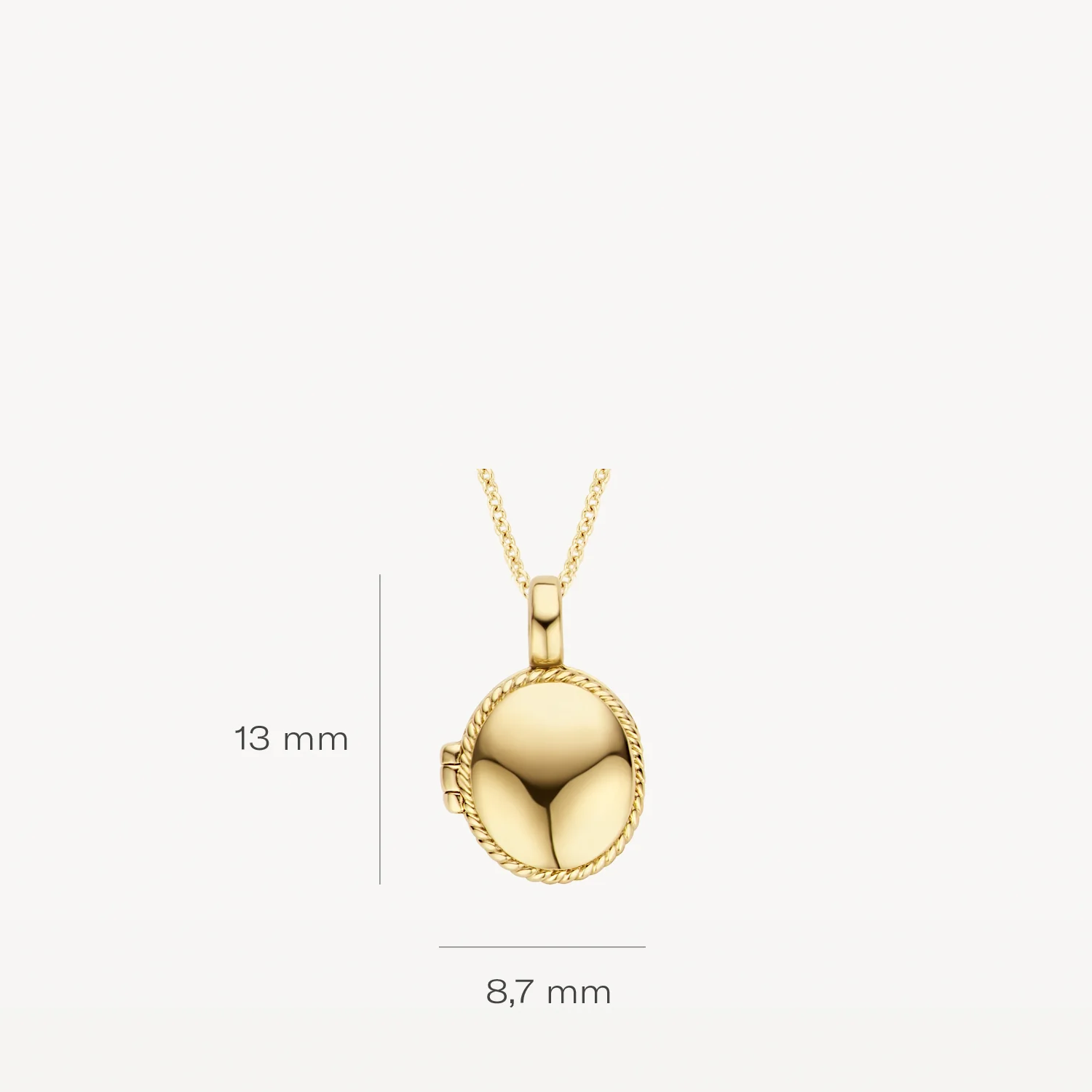 Dit klassieke, ovalen 14k geelgouden medaillon heeft een speelse kabeldecoratie. Aan de binnenzijde zit een zilveren plaatje waar je een naam of datum in kunt graveren. Het medaillon heeft een lengte van 13 mm en een breedte van 8.6 mm. Een prachtig geschenk voor een moeder, geliefde of dierbare vriendin.