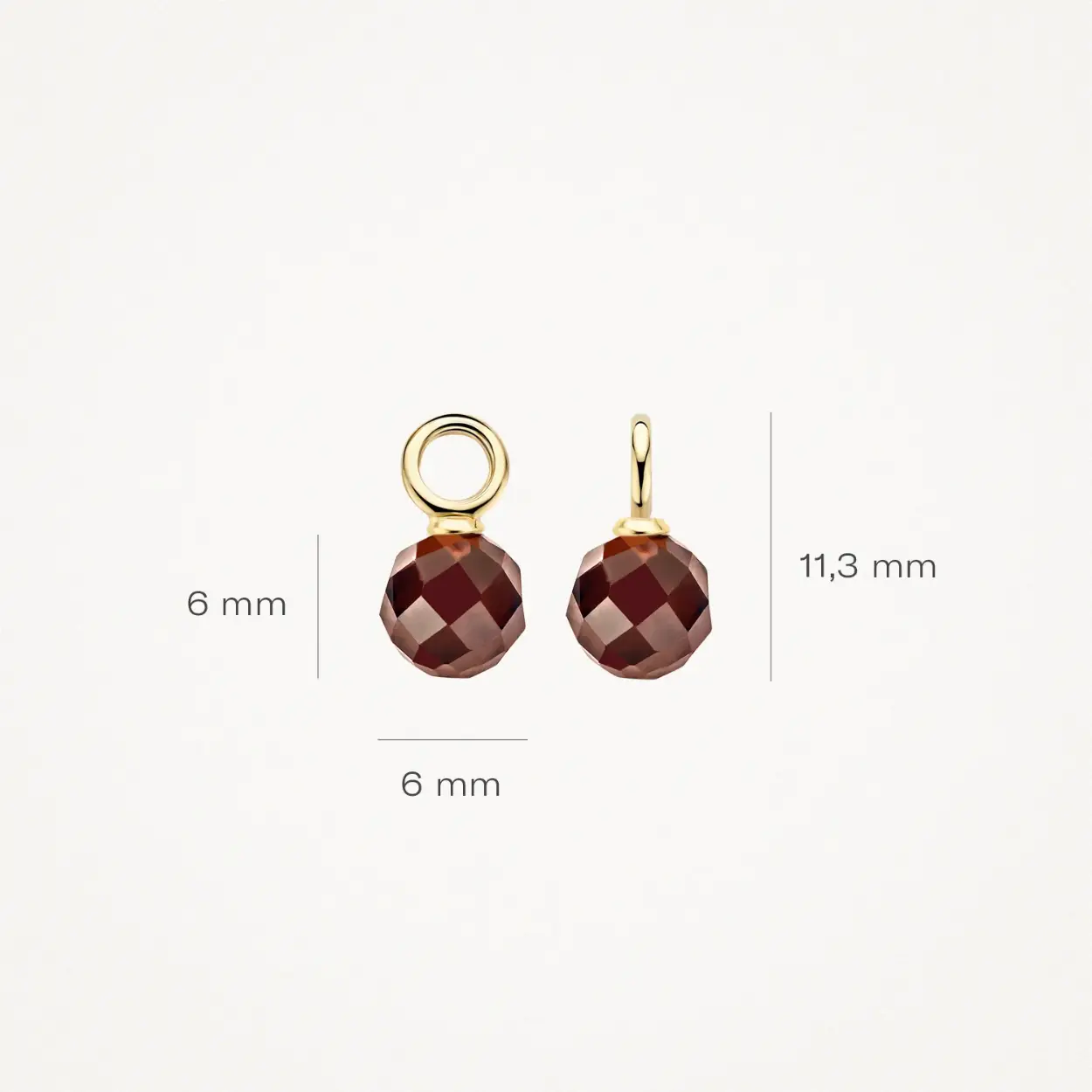 Geslepen in een fantasie slijpsel zijn deze bruin-kleurige Zirkonia’s verwerkt in de geel gouden oorbedels. De 14 karaat gouden oorbedels met een diameter van 6 millimeter zijn passend op creolen van Blush en kunnen zowel bij gladde als bij creolen voorzien van pavé gezette Zirkonia's. Deze oorbedels zijn geschikt voor oorringen met een buisdikte tot en met 2,4 millimeter.