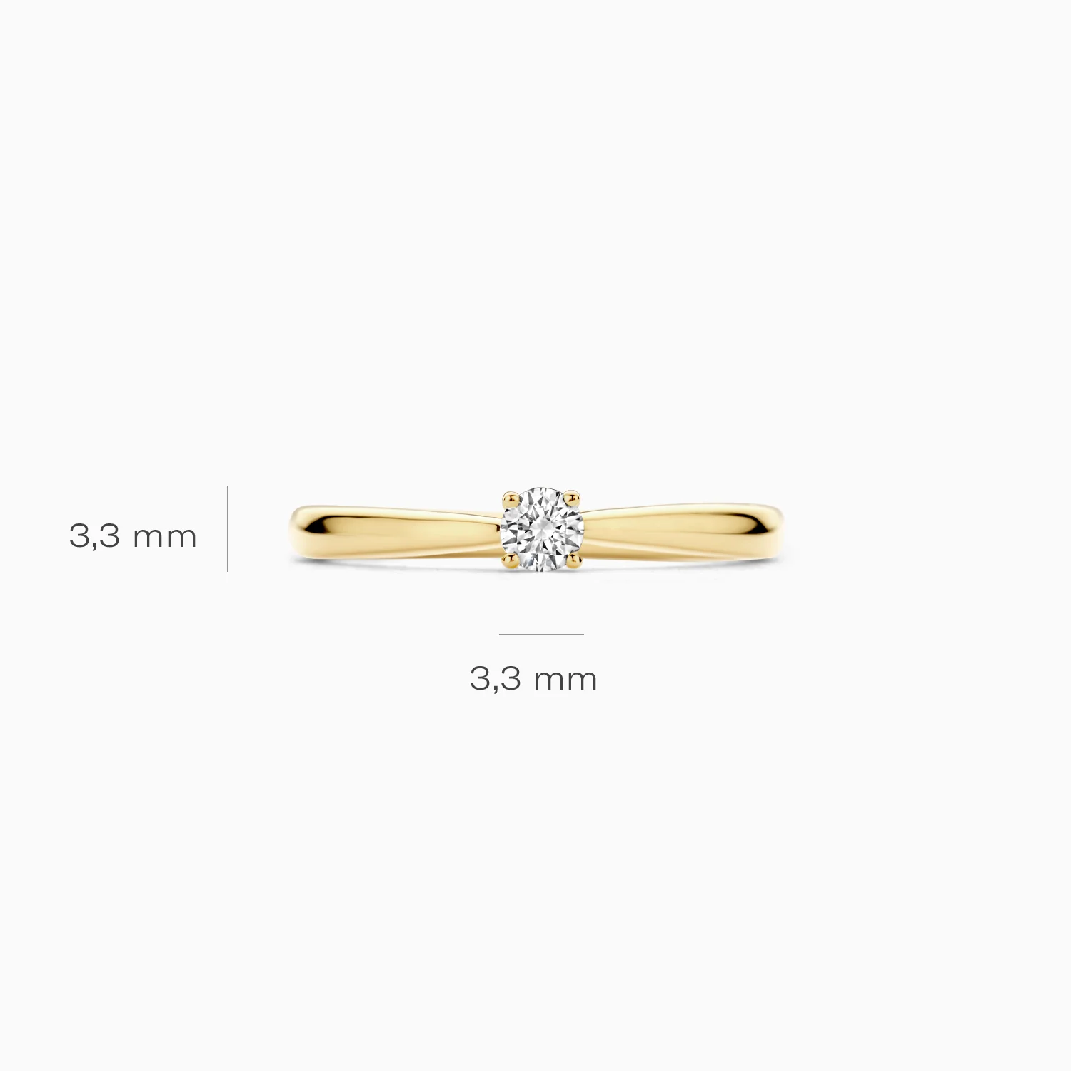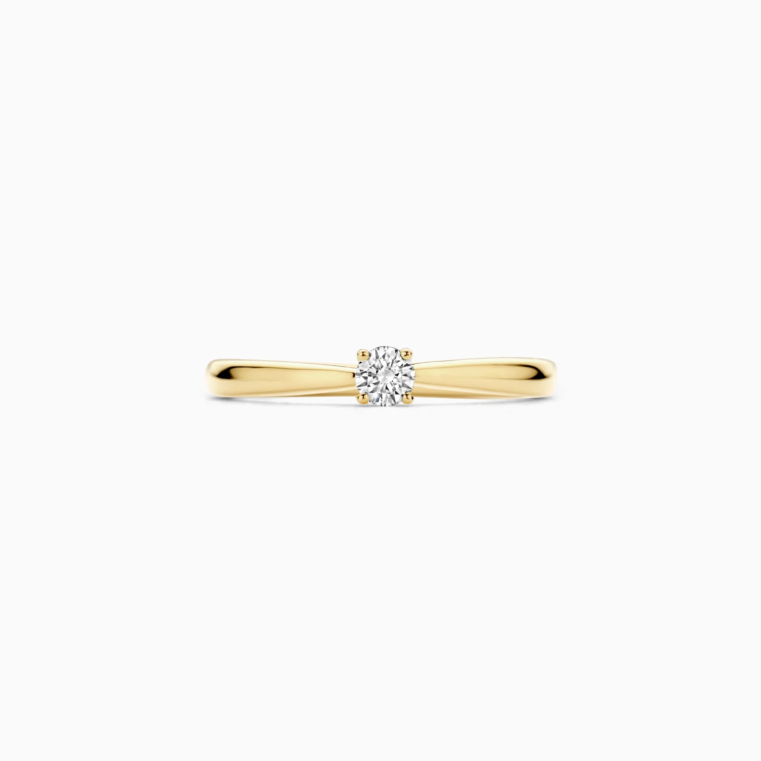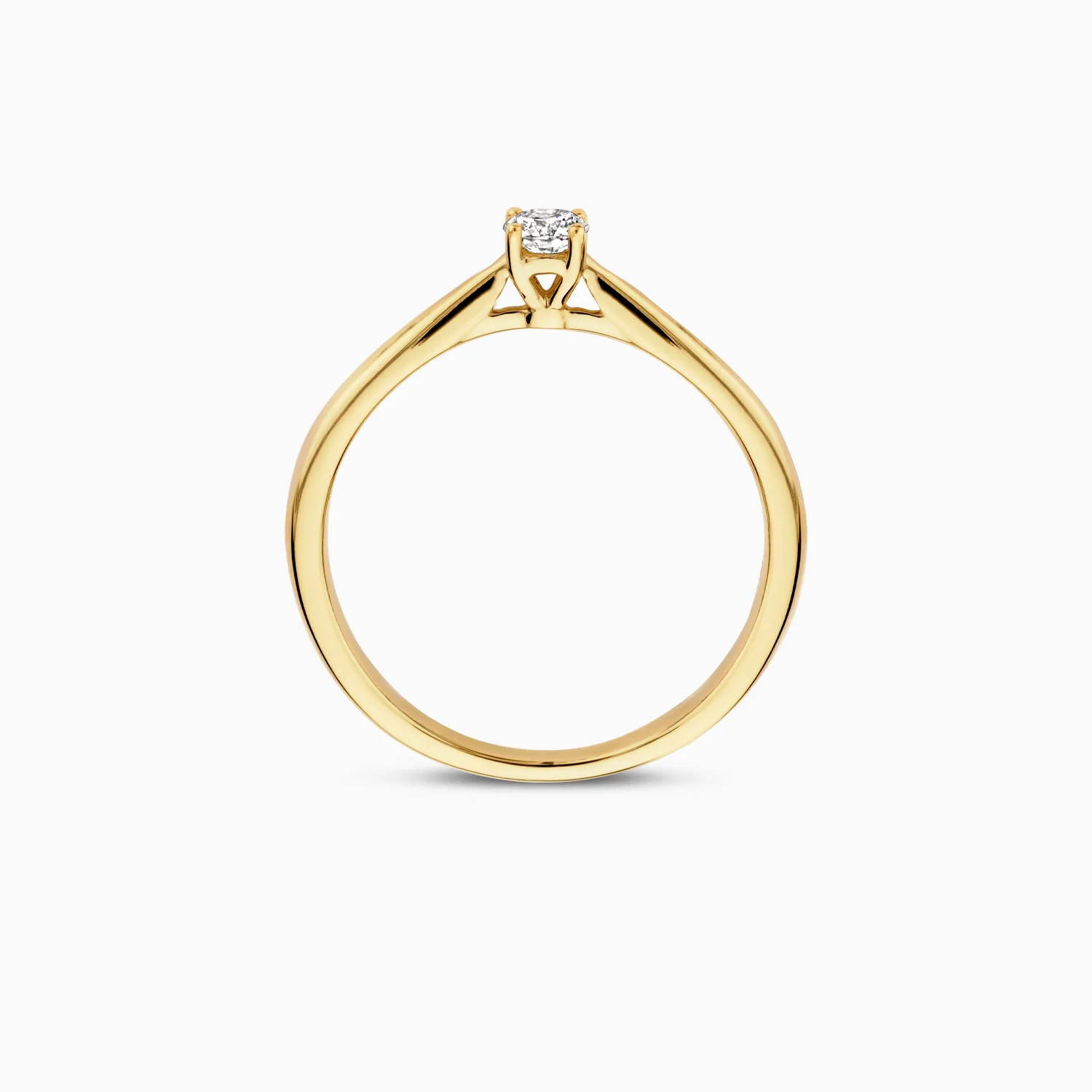 Blush Lab Diamonds ring in 14k geelgoud met briljant geslepen lab grown diamant 0.15 ct (SI1 G – Fine White Top Wesselton) in chaton‑zetting — elegant en stijlvol sieraad, ideaal als bijzonder cadeau. Verkrijgbaar bij Juwelier Schouten – Middenwaard, Heerhugowaard.