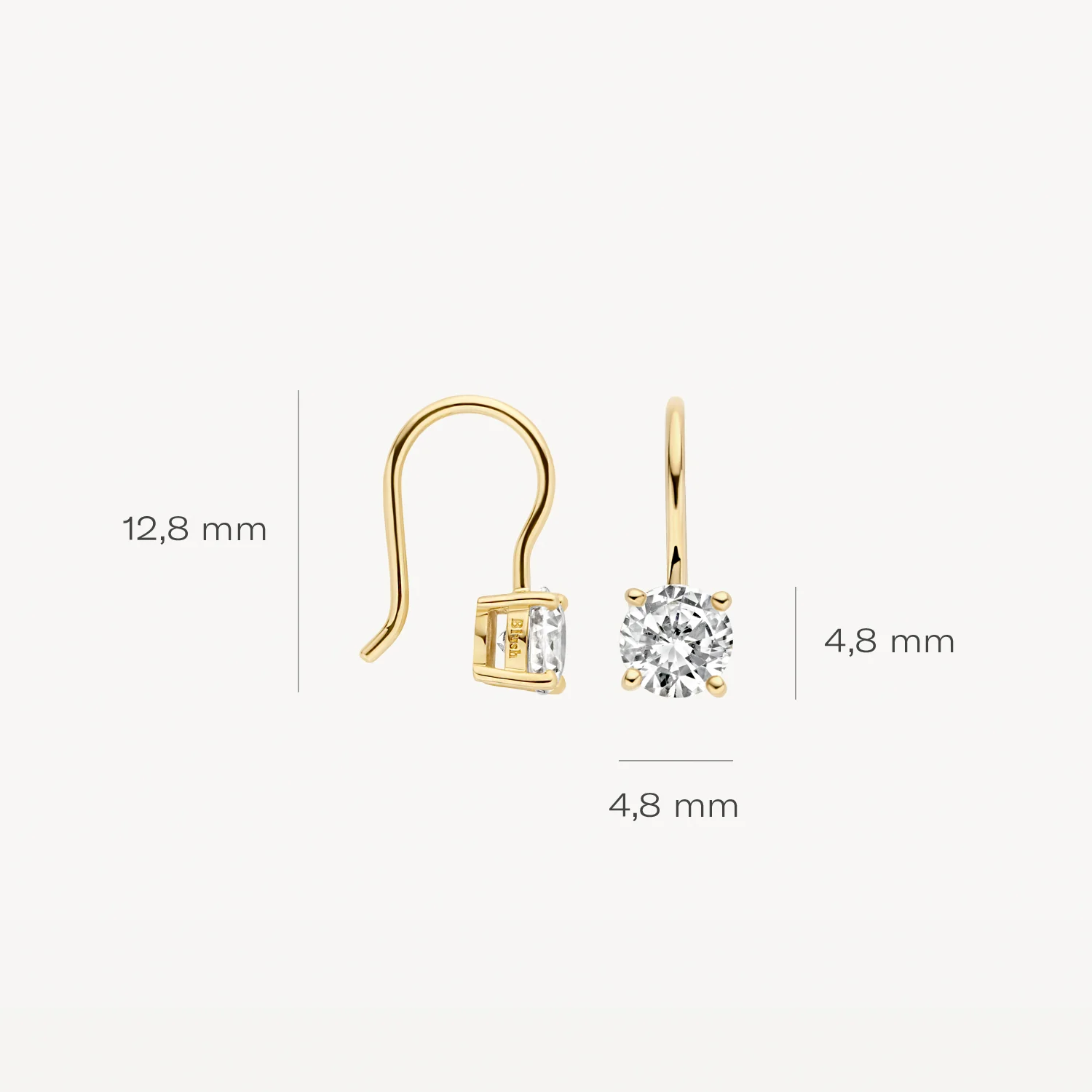 In deze 14k geelgouden oorhangers schitteren zirkonia’s met een doorsnede van 4,8 mm in een chatonzetting. De oorhangers kunnen met andere sieraden met zirkonia uit onze collectie gecombineerd worden tot een prachtige set.