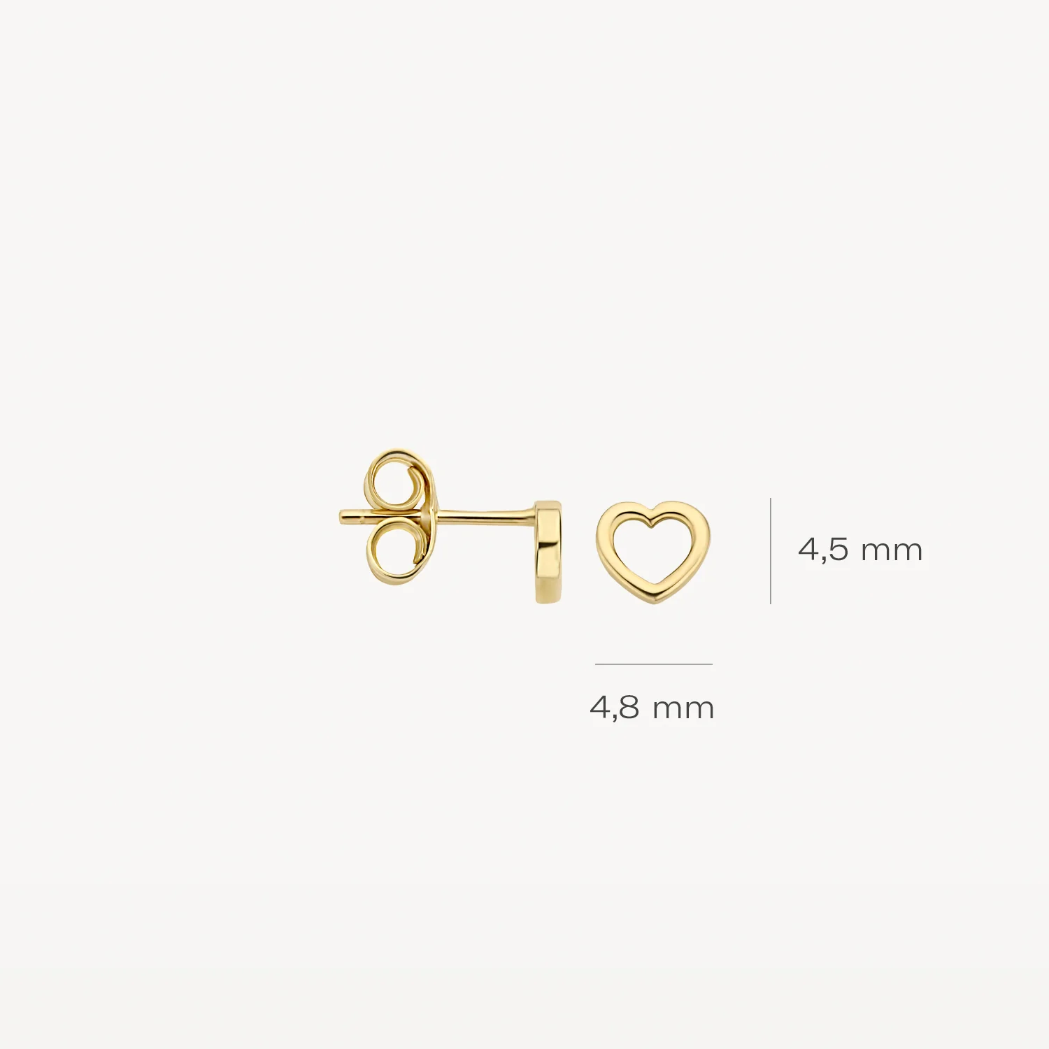 Deze oorknoppen in hartvorm zijn 4,8 mm hoog en gemaakt van 14k geelgoud. Het perfecte liefdevolle cadeau aan jezelf of een ander en prachtig te combineren met andere (oor)sieraden uit onze collectie.