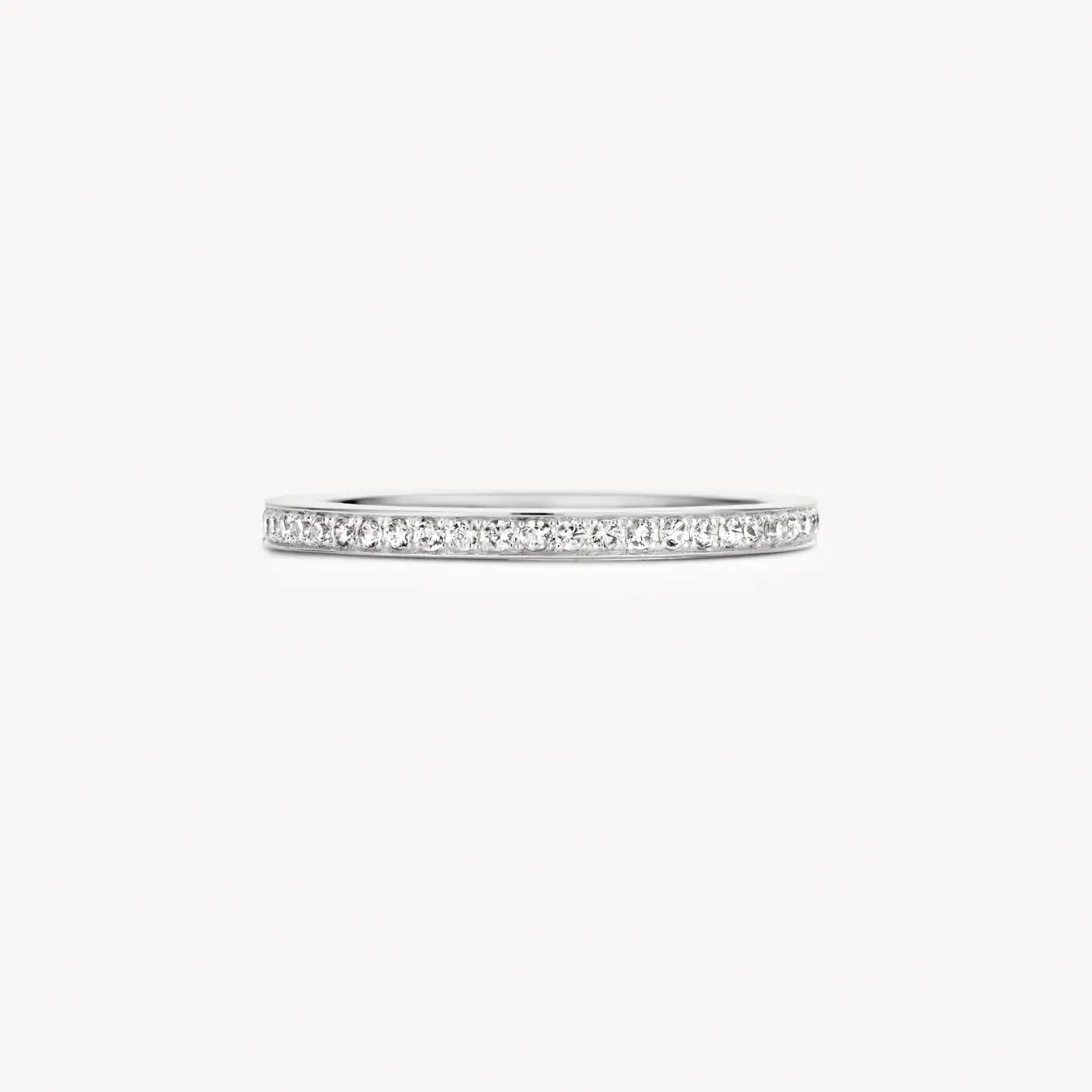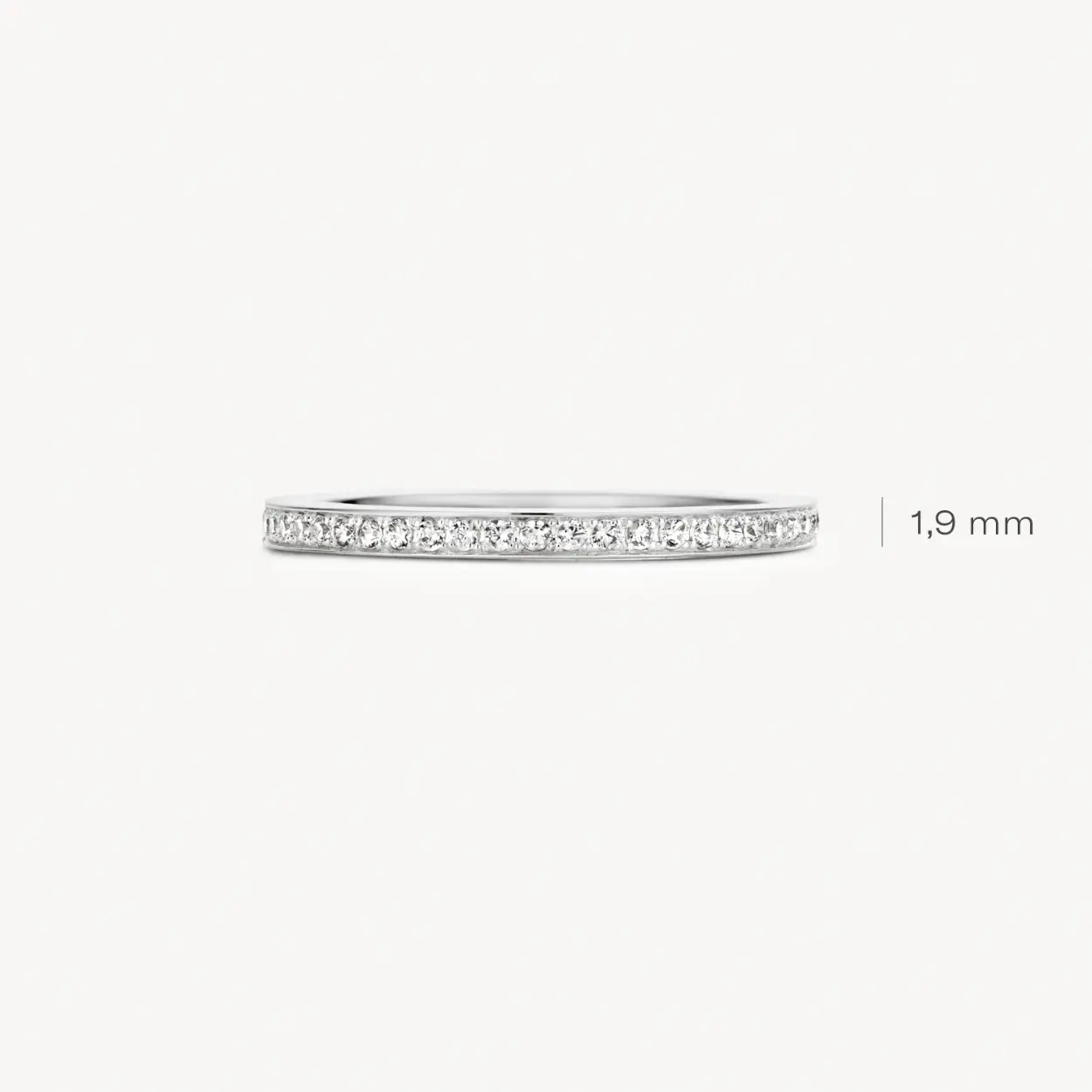 Deze ring van 14k witgoud schittert door zirkonia’s in pavé zetting helemaal rondom. De band is 1,9 mm breed en de ring combineert mooi met andere witgouden ringen uit onze collectie.