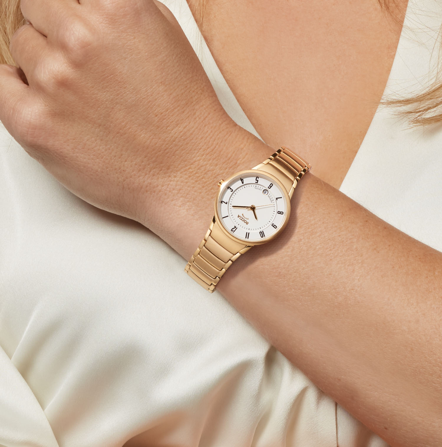 Dit dameshorloge van Boccia heeft een frisse en chique uitstraling. De 3158-05 heeft een ronde goudkleurige titanium horlogekast met een gladde bezel en een witte wijzerplaat met een datum. Aan de titanium kast zit een goudkleurige titanium schakelband met een vouwsluiting. Het horloge heeft een saffierglas en is 5ATM. Of je nu sportief of chique gekleed gaat, dit horloge past bij elke outfit en iedere gelegenheid!
