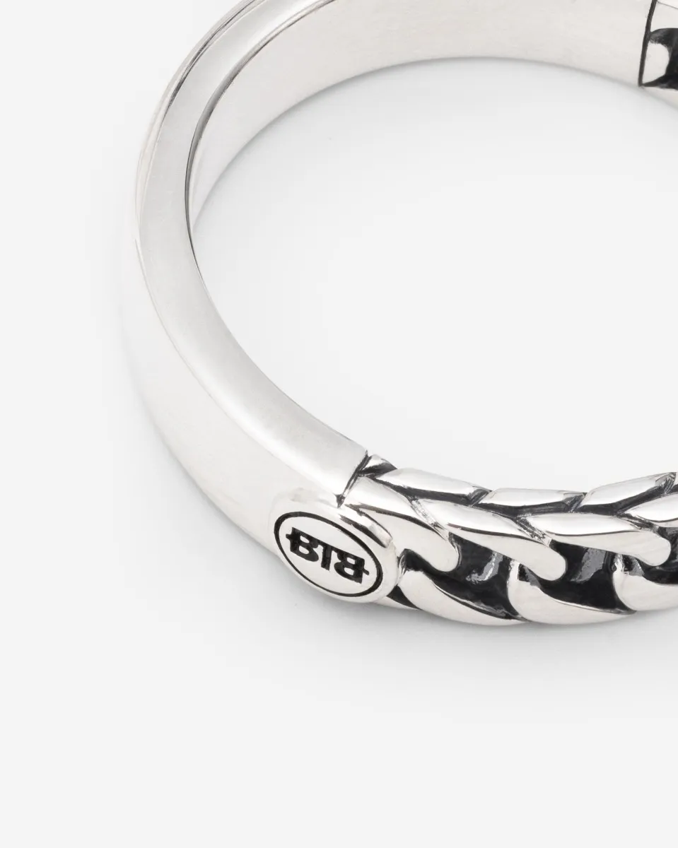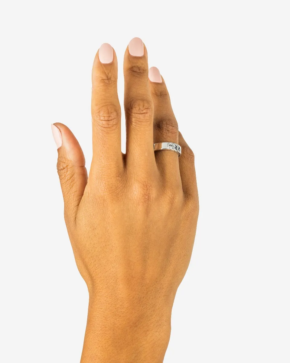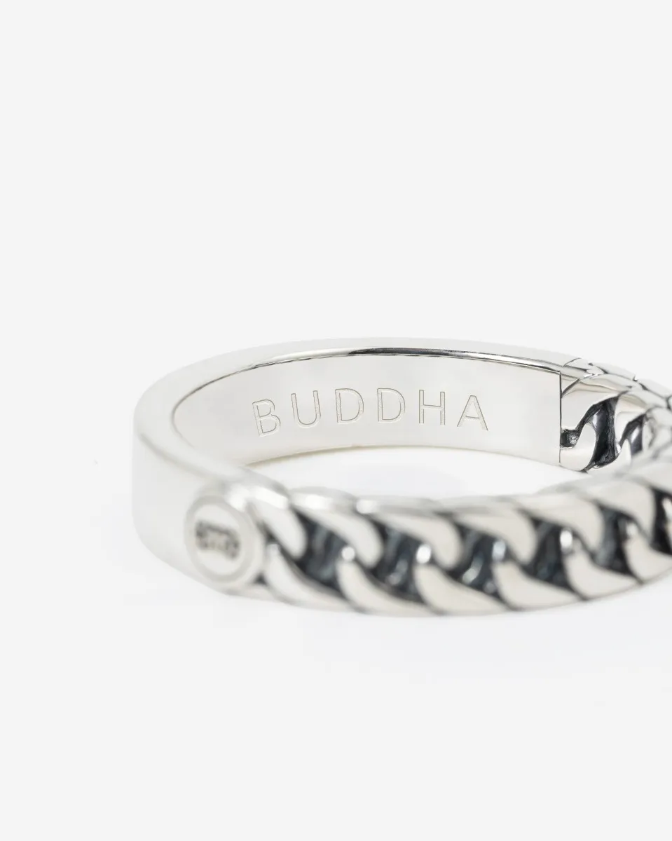 De Esther Small Dual Ring is vervaardigd uit gerecycled sterling zilver. Dankzij de combinatie van een gladde zijde en het geweven Esther-patroon is deze ring graveerbaar. Laat jouw persoonlijke verhaal versmelten met deze veelzijdige ring. Deze ring is kleiner dan de Esther Dual Ring, maar groter dan de Esther Mini Dual Ring, en daardoor perfect te combineren met andere sieraden uit de Esther-collectie van Buddha to Buddha. Ontworpen in Amsterdam en op duurzame wijze geproduceerd in Zuidoost-Azië. Wij geloven dat elk sieraad een eigen ziel heeft. Wat betekent dat voor jou?