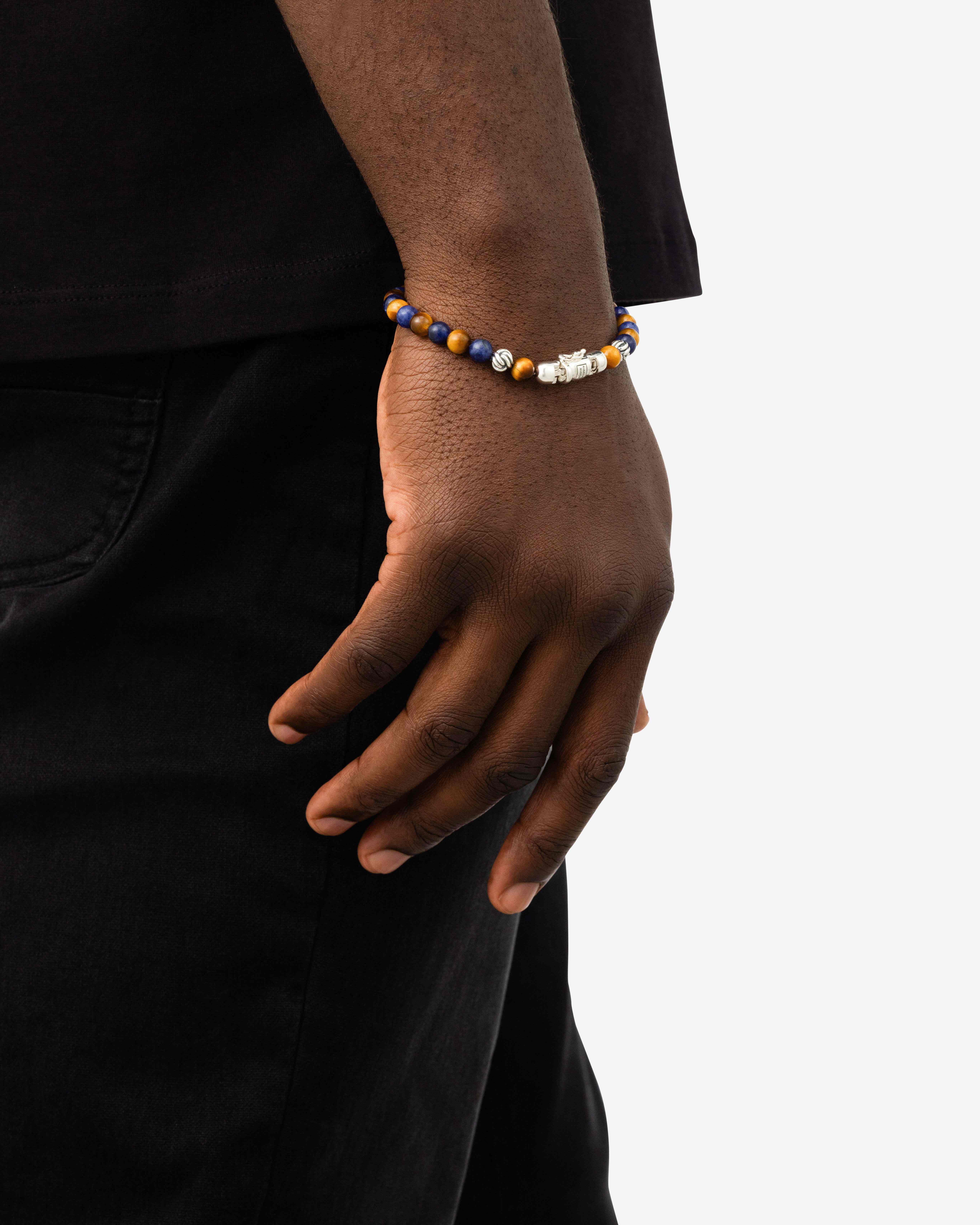De Spirit BeadMini Mix Sodalite Tijgeroog Armband, geïnspireerd op bidkralen, is een prachtig Buddha to Buddha ontwerp met het herkenbare sterling zilveren slot. De armband bevat afwisselend sodaliet- en tijgeroogstenen. De mini-spirit kralen zijn kleiner dan de spirit bead armbanden. Sodaliet bevordert expressie, terwijl tijgeroog motivatie en focus stimuleert. Handgemaakt van gerecycled premium zilver en tijdloos. Kracht en esthetiek smelten samen in dit product. Handgemaakt met duurzame materialen om een leven lang mee te gaan. Let op: de sluiting van deze Spirit Bead armband bevat een magneet. Deze is niet roestvrij en daarom is het belangrijk om elk contact met water (zoals zwemmen en douchen, enz.) te vermijden om roestvorming rond de magneet te voorkomen.