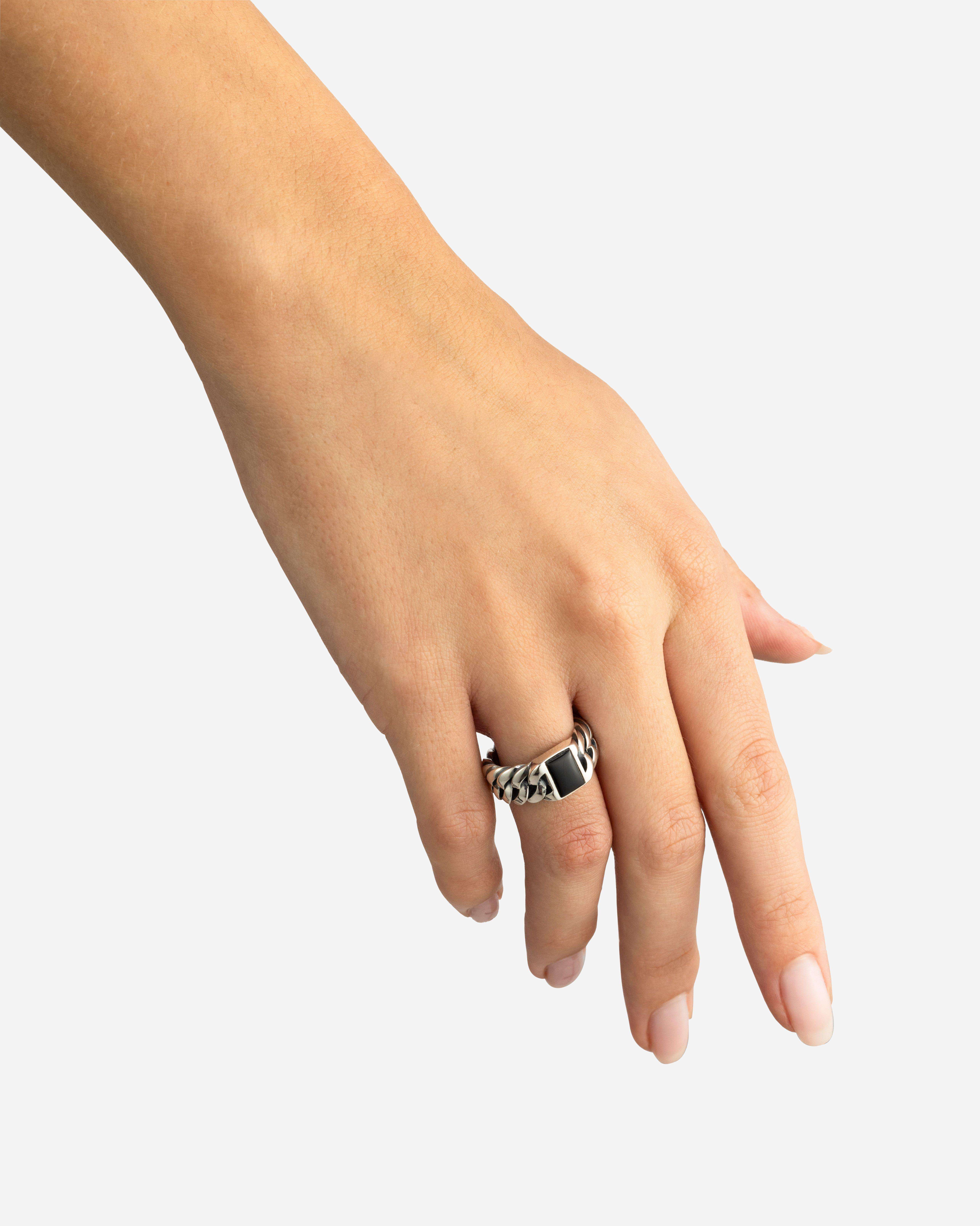 De Chain Steen Ring Onyx is een opvallend lid van onze Chain collectie. Deze zilveren ring is met liefde en vakmanschap vervaardigd, met in het middelpunt een diepe, betekenisvolle onyx steen die symbool staat voor innerlijke kracht. De combinatie van de krachtige steen en het tijdloze design maakt dit een unieke ring. Net als al onze Buddha to Buddha sieraden, is deze ring ontworpen in Amsterdam, met de hand gemaakt in Zuidoost Azië en laat hij zich moeiteloos combineren met andere sieraden. Laat jij ook je innerlijke kracht stralen met de Chain Steen Ring Onyx?