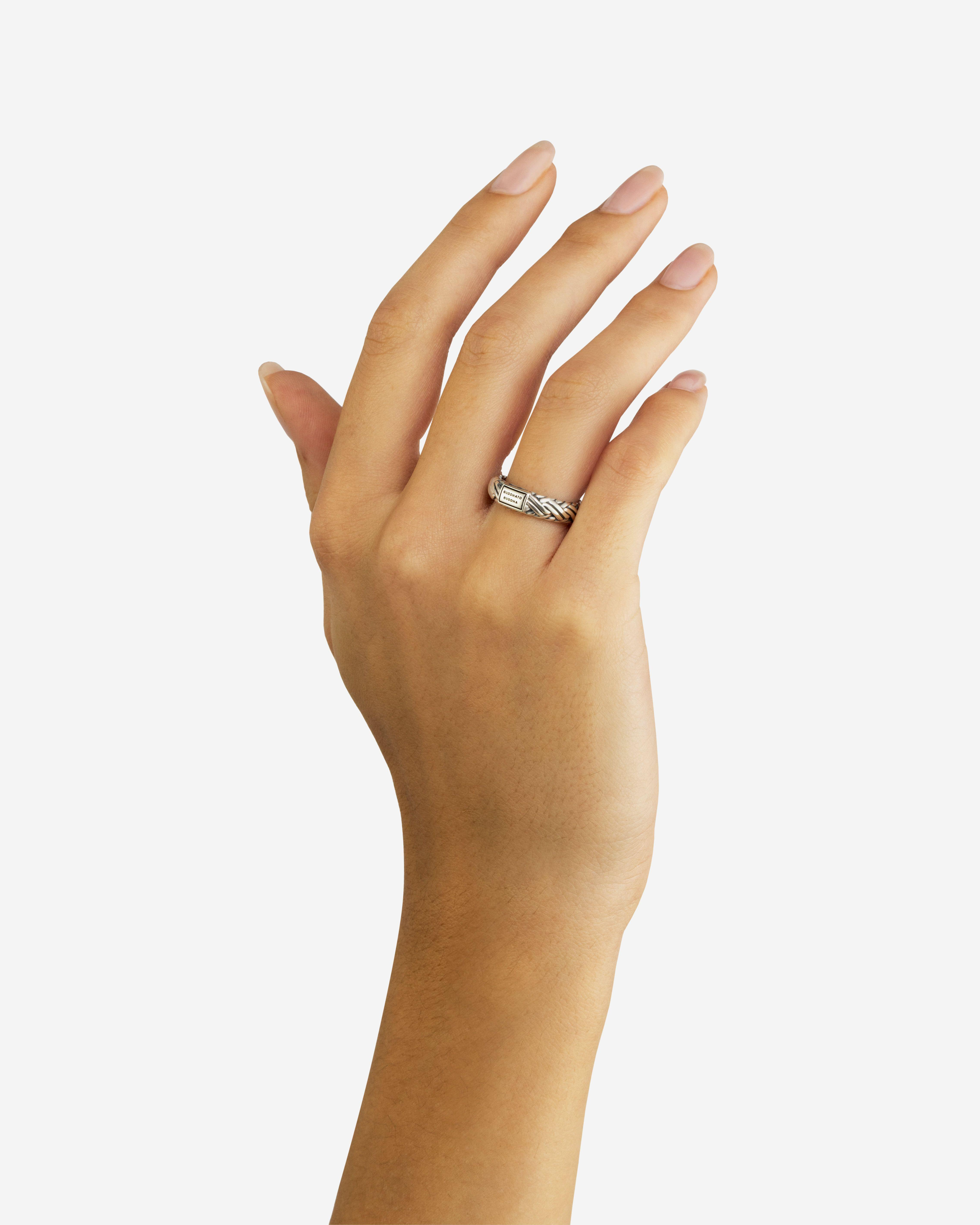 De Katja XS Ring, met zijn verfijnde gevlochten design, belichaamt puur vakmanschap. Geïnspireerd door de iconische Katja-schakel, is deze sterling zilveren ring zowel een statement op zich als een tijdloze toevoeging aan je collectie. Ontworpen in Amsterdam en met toewijding handgemaakt in Zuidoost-Azië, vormt deze ring een harmonieuze combinatie met andere Buddha to Buddha sieraden. Welk verhaal vertel jij met deze zilveren ring?