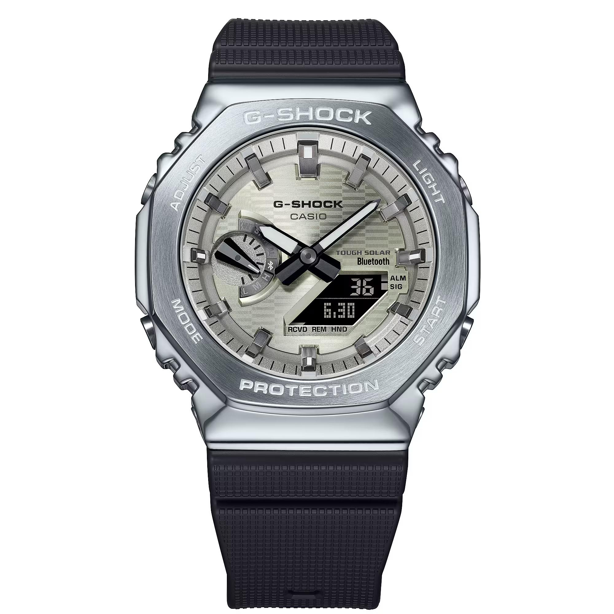 Kies je favoriete kleurencombinatie van afwerking met dampdepositie - de GBM-2100A-2B met blauwe wijzerplaat en zilverkleurige indexen, de GBM-2100A-4B met bordeauxrode wijzerplaat en zilverkleurige indexen, of de GBM-2100A-8B met lichtgeel goudkleurige wijzerplaat en zwarte geaccentueerde indexen.