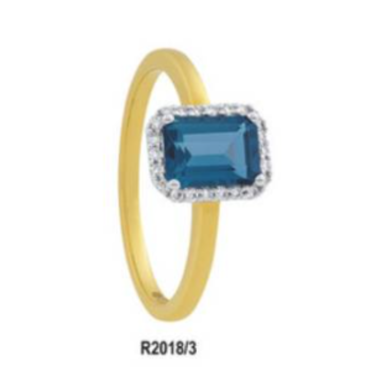 Eclat bicolor ring model R2018/3 met 0.09crt briljant en blauwe topaas, maat 17
