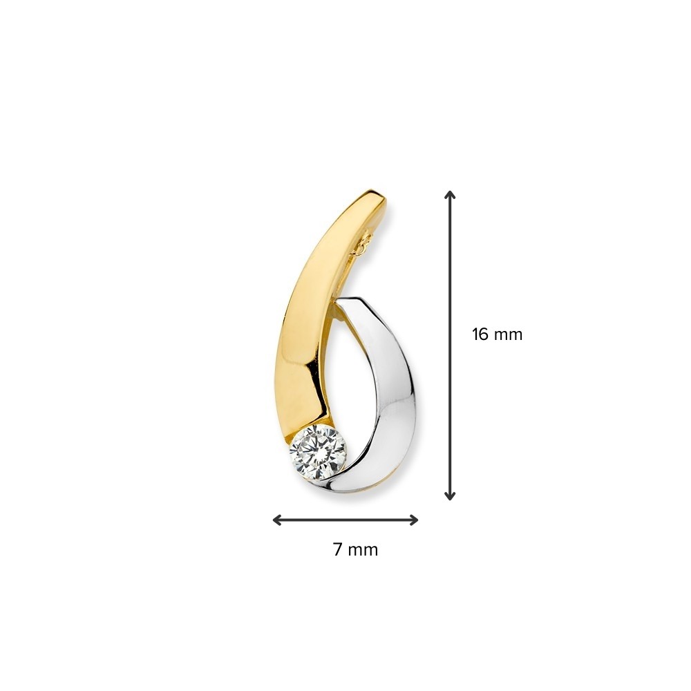 Bicolor wit- en geelgouden hanger met zirkonia.