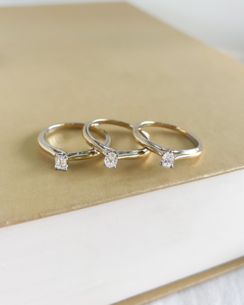 Prachtige bicolor geel- en witgouden solitair met twee ringen die met elkaar samensmelten. De ring bevat een emerald geslepen diamant als echte eyecatcher en is perfect solo te dragen, maar ook mooi in een combinatie met een gouden aanschuifring.