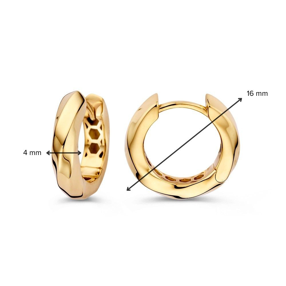 De Excellent gouden oorringen (model OM108006) zijn prachtige creolen gemaakt van 14-karaats goud. Hun glanzende afwerking en gouden kleur maken ze een stijlvolle keuze voor elke gelegenheid. Met een breedte van 4 mm en een gewicht van 3 gram passen ze perfect bij zowel casual als formele outfits. Draag ze als een elegante aanvulling op je dagelijkse look.