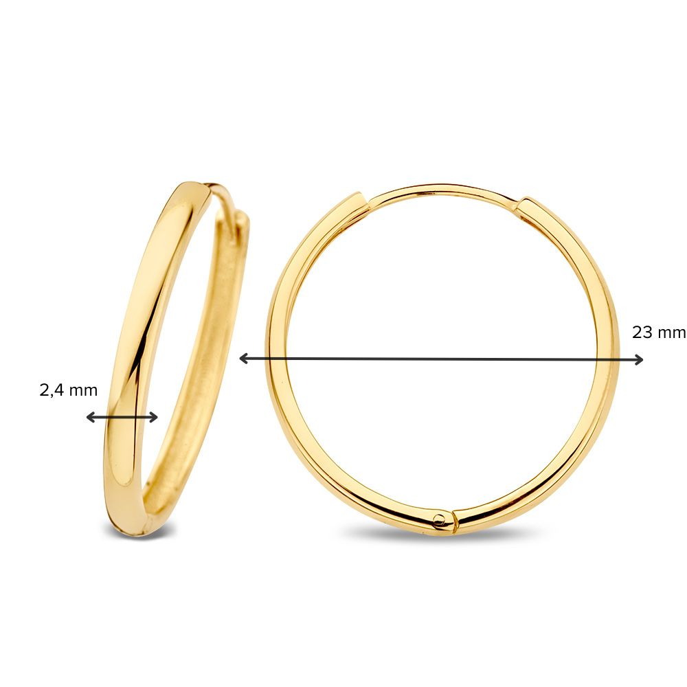 De Excellent geelgouden oorringen (modelnummer OE107508) zijn een prachtige toevoeging aan je sieradencollectie. Deze oorringen zijn gemaakt van geelgoud en hebben een glanzende afwerking. Met een breedte van 2,4 mm en een gewicht van 2 gram, zijn ze ideaal voor dagelijks gebruik of een speciale gelegenheid. Draag deze elegante oorringen om je outfit stijlvol te verfraaien.