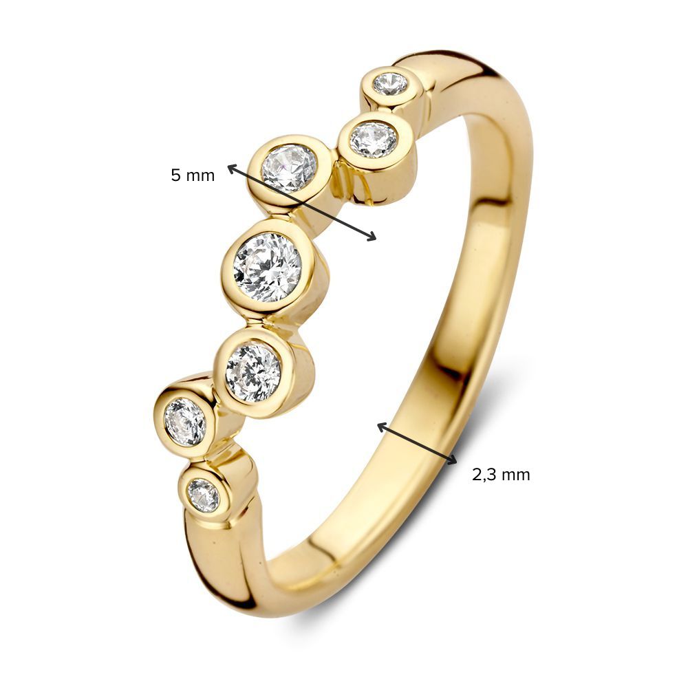 Deze prachtige gouden ring, modelnummer RH127360-56, is uitgevoerd in geelgoud en verfraaid met een witte zirconia steen. Met een gewicht van 2 gram en een breedte van 5 mm is het een elegante keuze. Perfect om dagelijks te dragen of voor speciale gelegenheden. Combineer met andere gouden sieraden voor een verfijnde look. Verfijning ontmoet veelzijdigheid!