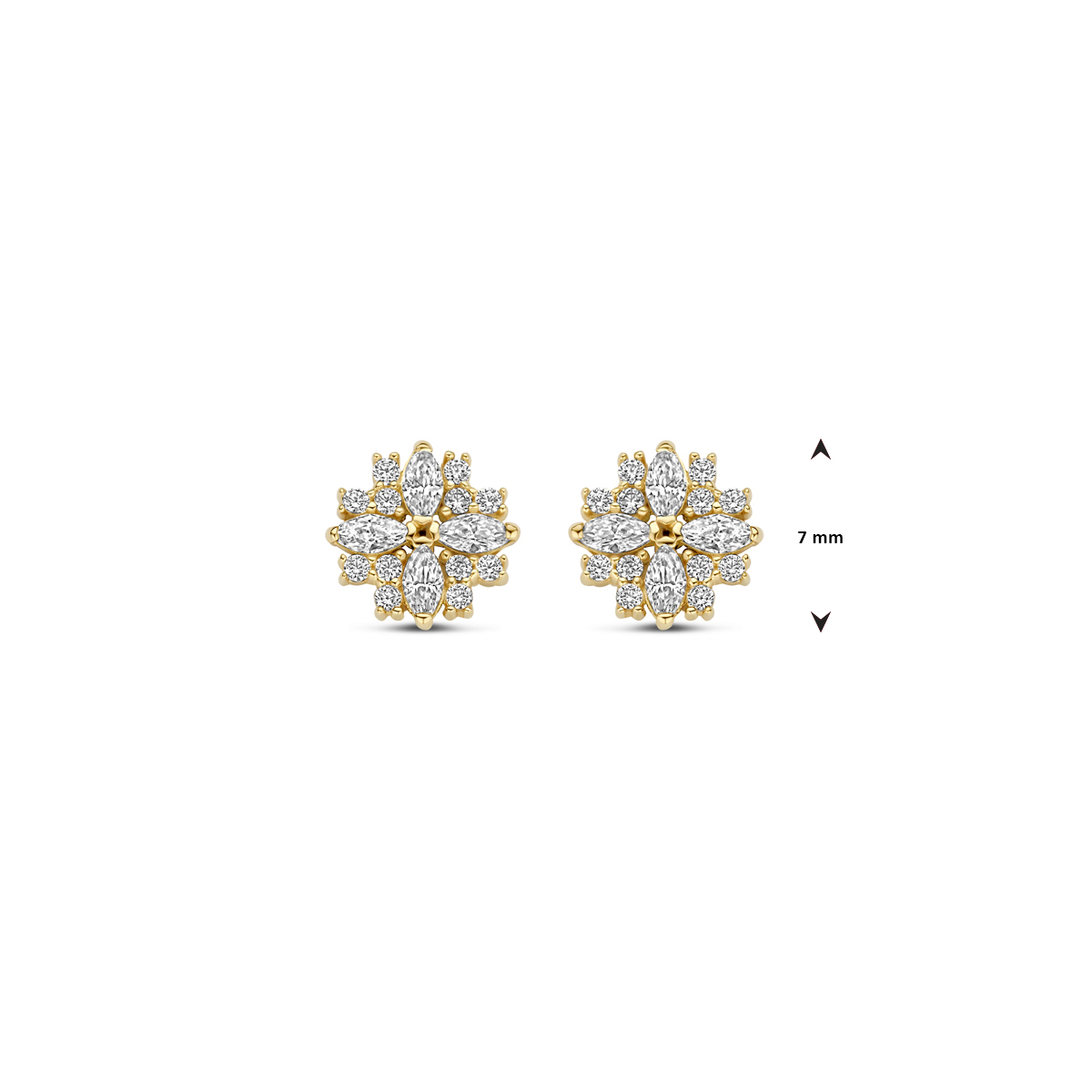 14k Geelgouden oorknoppen uitgevoerd met zirkonia. De oorknoppen hebben een diameter van 7mm.