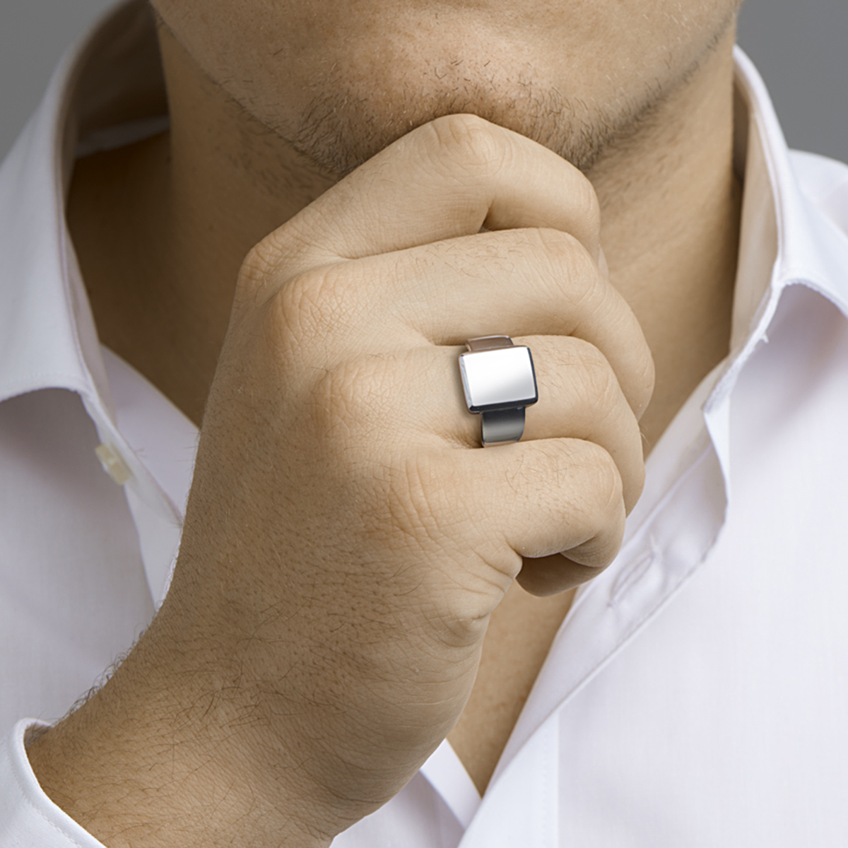 Gerhodineerd 925 zilveren graveerring. De ring heeft een breedte van 12mm.