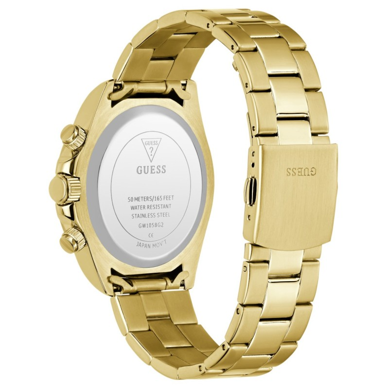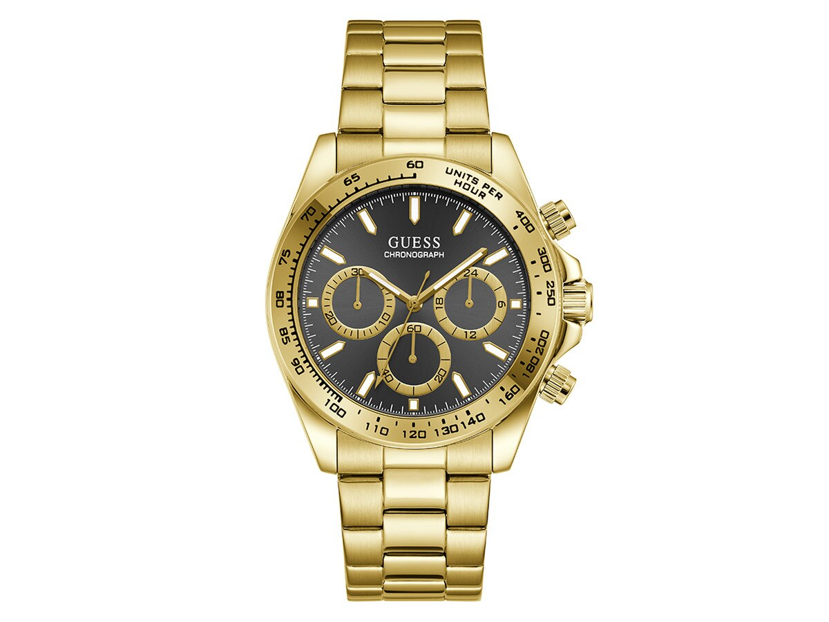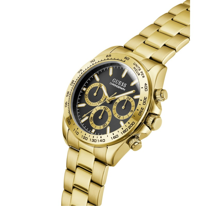 uess Arthur Chronograph heren horloge 44 mm goudkleurig | GW1058G2 — elegant en sportief chronograafhorloge met zwarte wijzerplaat, goudkleurige roestvrijstalen kast en band. Tijdloos design met handige chronofuncties. Verkrijgbaar bij Juwelier Schouten – Middenwaard, Heerhugowaard.