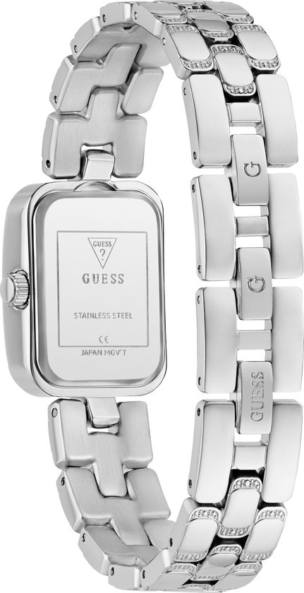 Klassiek rechthoekig dameshorloge van Guess Watches in zilver. Dit elegante uurwerk straalt tijdloze klasse uit en is een perfecte aanvulling op zowel formele als casual outfits. De glinsterende kristallen voegen een vleugje glamour toe, terwijl het subtiele reliëf op de band zorgt voor een uniek en verfijnd detail.
