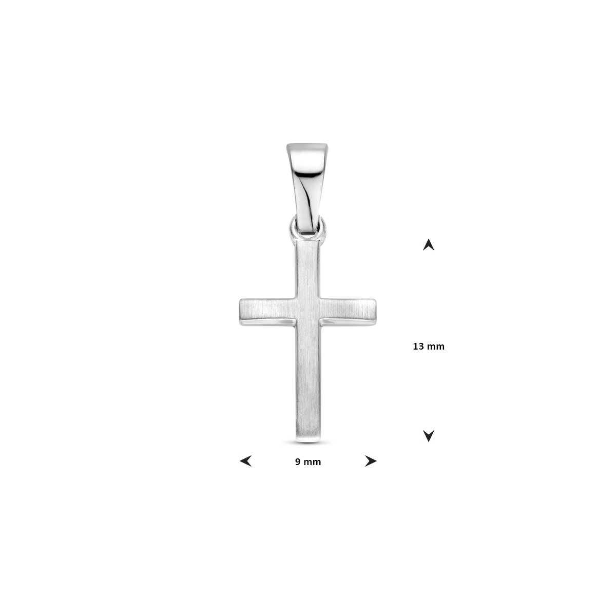 Gerhodineerd 925 zilveren hanger in de vorm van een kruis. De hanger heeft een totale hoogte van 20mm en een afmeting van 13x9mm.