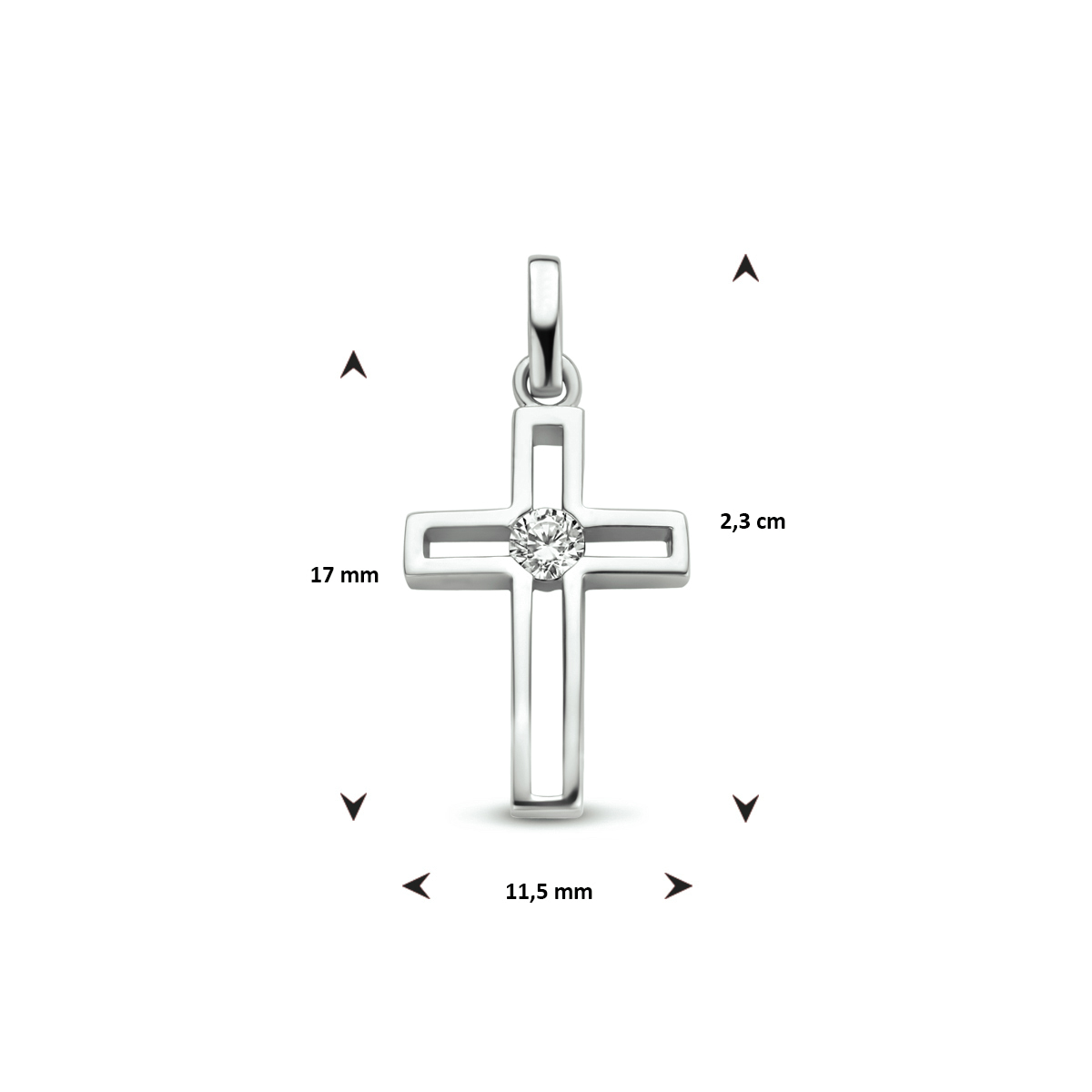 Deze prachtige zilveren hanger met een kruisje en zirkonia steentjes is een echte eyecatcher. De zirkonia steentjes zorgen voor een subtiele glinstering, waardoor deze hanger perfect is voor dagelijks gebruik of voor speciale gelegenheden. Draag deze hanger aan een zilveren ketting voor een stijlvolle en elegante look. Een tijdloos sieraad dat elke outfit compleet maakt.