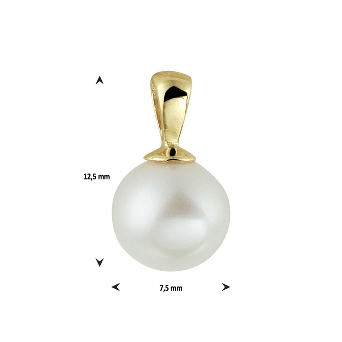 Geelgouden hanger met een zoetwaterparel van 7.5mm uitgevoerd met een stevig hangoog. De hanger voegt een subtiele hoeveelheid glamour toe aan iedere outfit. Tip: Combineer deze hanger met een bijpassend collier uit onze collectie of vanuit je eigen stash en creeer zo elke keer weer een nieuwe look.