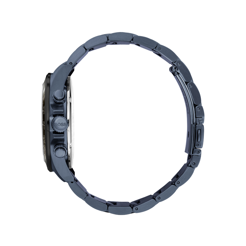 Dit herenhorloge uit de BOSS Hero serie is een sportief horloge. Het horloge heeft mineraalglas, een blauwe wijzerplaat en een stalen horlogekast met een kastdiameter van 43 mm. De band van het horloge is van staal en kan op maat worden gemaakt door er schakels uit te halen.