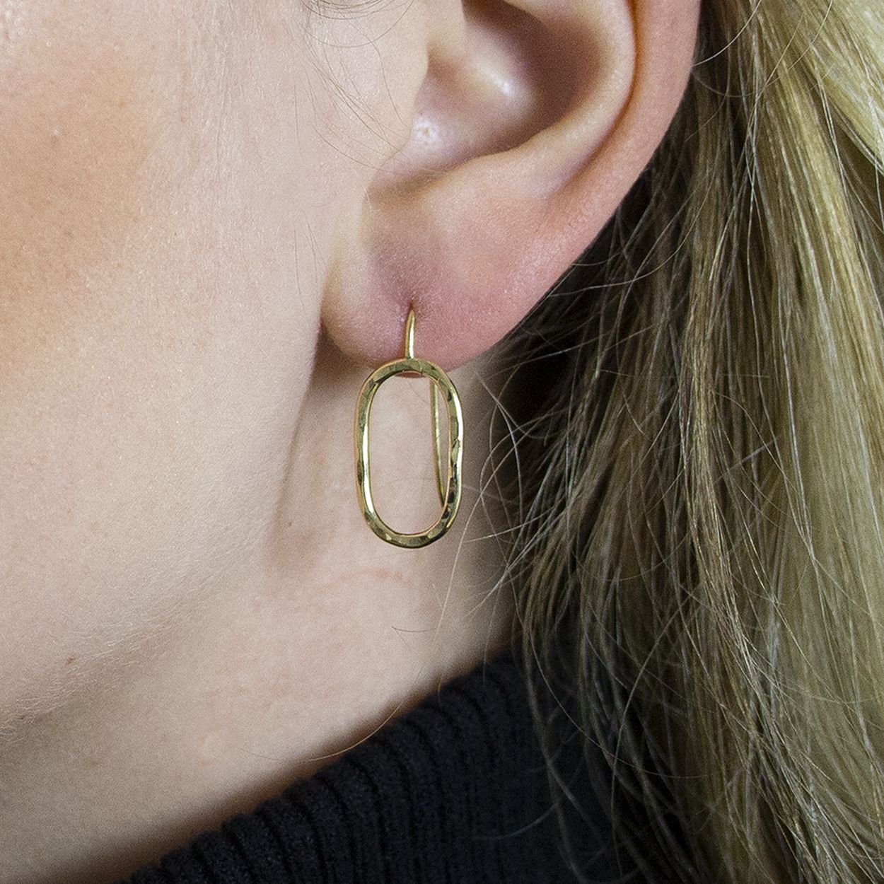 Combineer eindeloos met deze prachtige ovale oorhangers. De oorhangers met hamerslag zijn gemaakt van goldfilled.