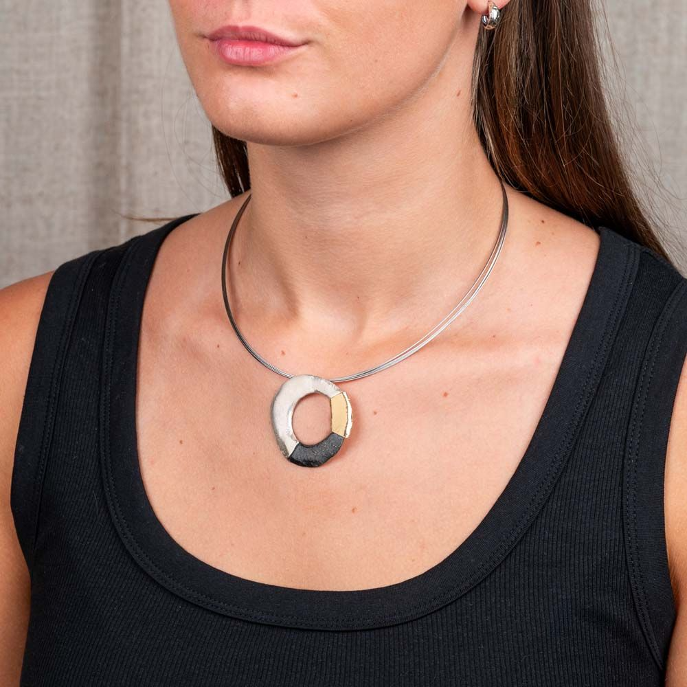 Spang 7-draads gemaakt van edelstaal. De sluiting van deze spang is gemakkelijk te openen en sluiten door middel van een klik-systeem. Verkrijgbaar in 2 lengtes. Combineer met een mooie hanger van Jéh en ga voor een complete look!