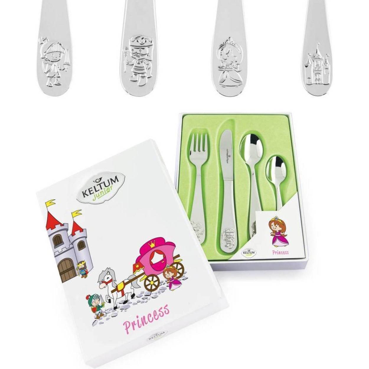 Een 4-delig edelstalen kindercouvert van een prinses, welke leuk is om weg te geven aan een meisje. Op elk heft van een bestekdeel is een figuurtje in reliëf vervaardigd. Zo zijn twee ridders, een prinses en een kasteel afgebeeld. Dit kindercouvert bevat een bijpassende geschenkverpakking, welke cadeau gegeven kan worden bij een geboorte, doop of andere gelegenheid.