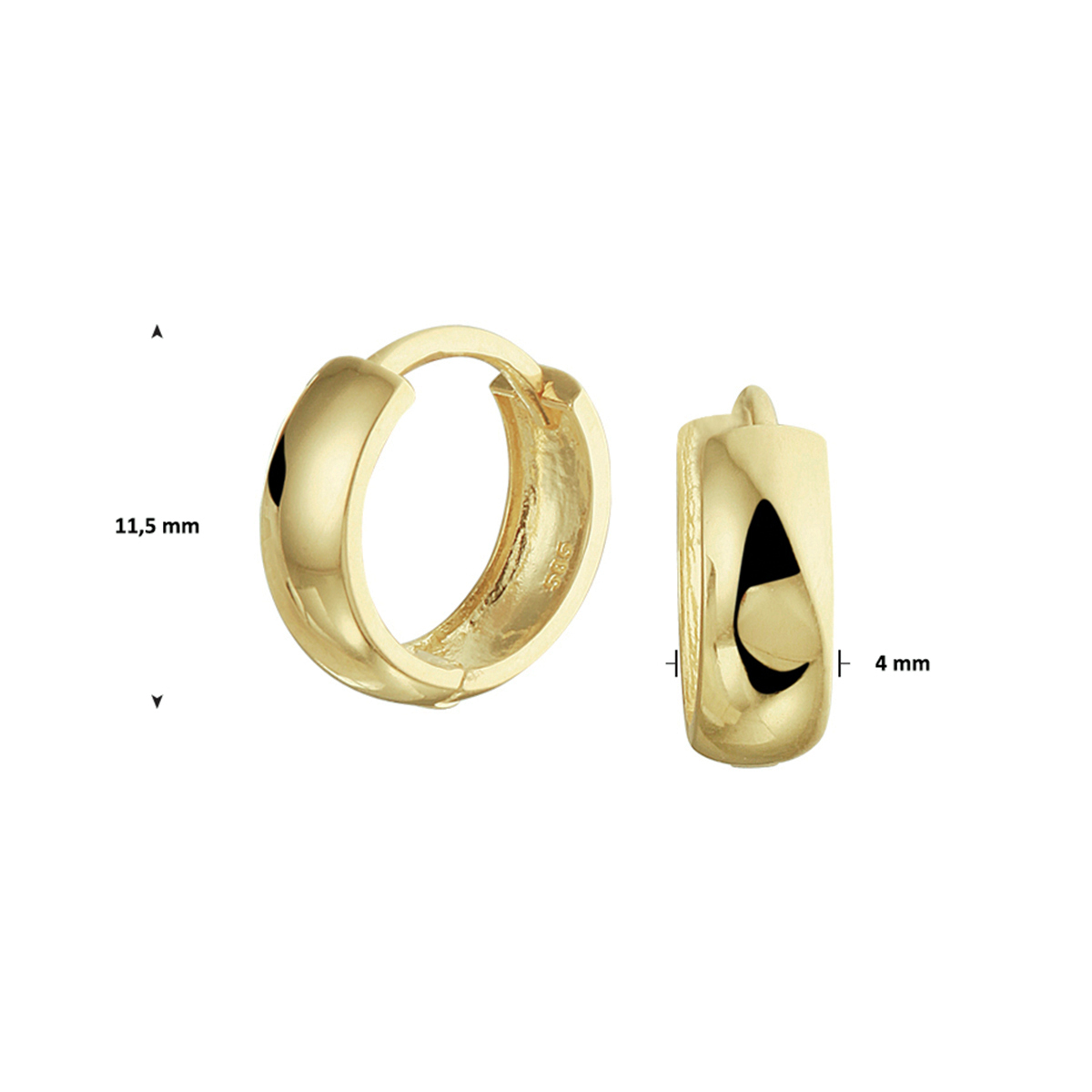Deze prachtige gouden klapoorringen hebben een bol design en zijn 11.5x4mm groot. Ze zijn ideaal om dagelijks te dragen en geven elke outfit een stijlvolle touch. De ringen zijn gemaakt van hoogwaardig materiaal en zijn lichtgewicht en comfortabel om te dragen. Combineer ze moeiteloos met andere sieraden voor een trendy look. Geef jezelf of een geliefde een prachtig cadeau met deze schitterende oorbellen.