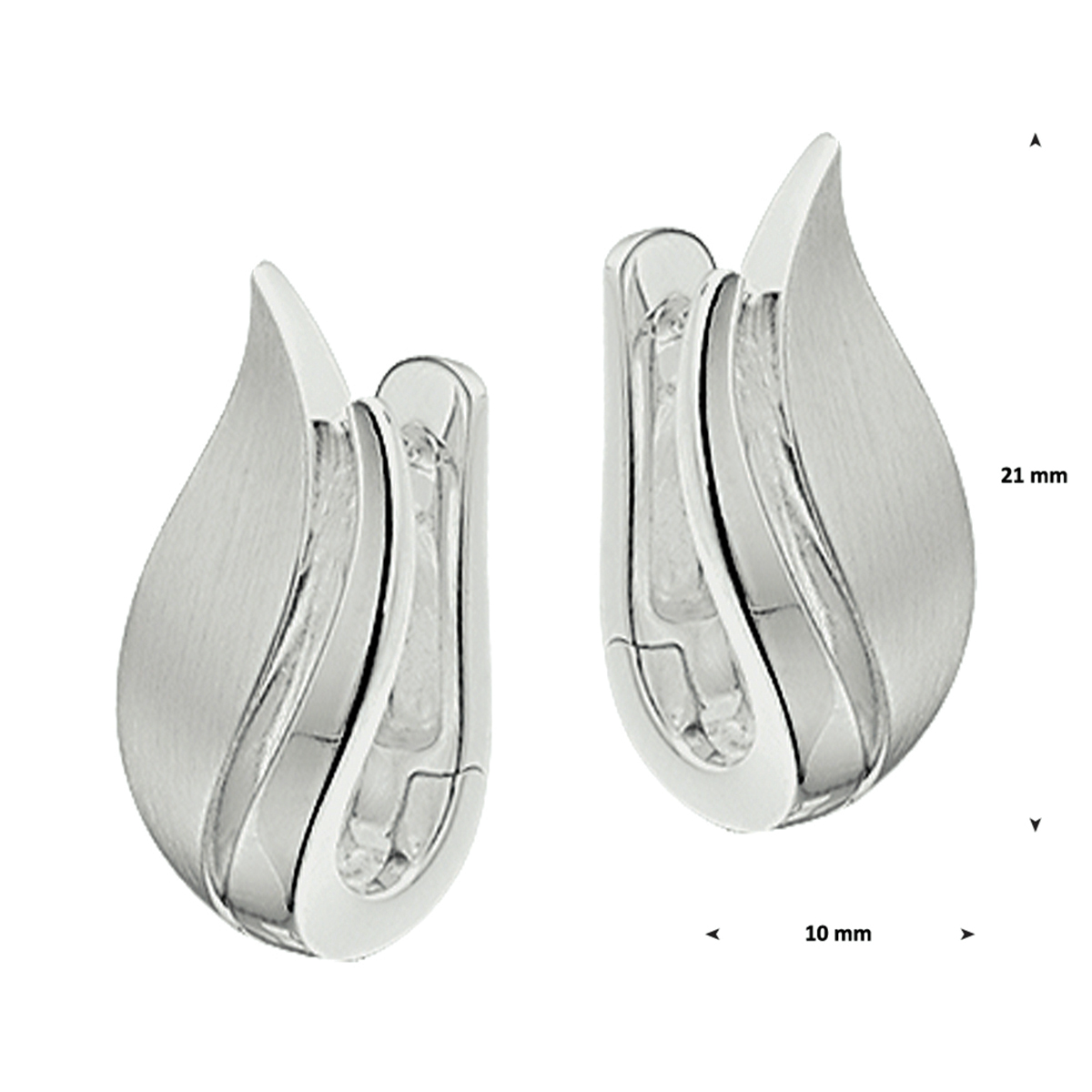 Chique gerhodineerd zilveren klapcreolen met een afmeting van 21x10mm uitgevoerd in poli mat en met een stevige scharnier sluiting. Deze luxe ogende oorsieraden zijn perfect voor die ene speciale avond waarbij je wilt stralen met de mooiste sieraden.