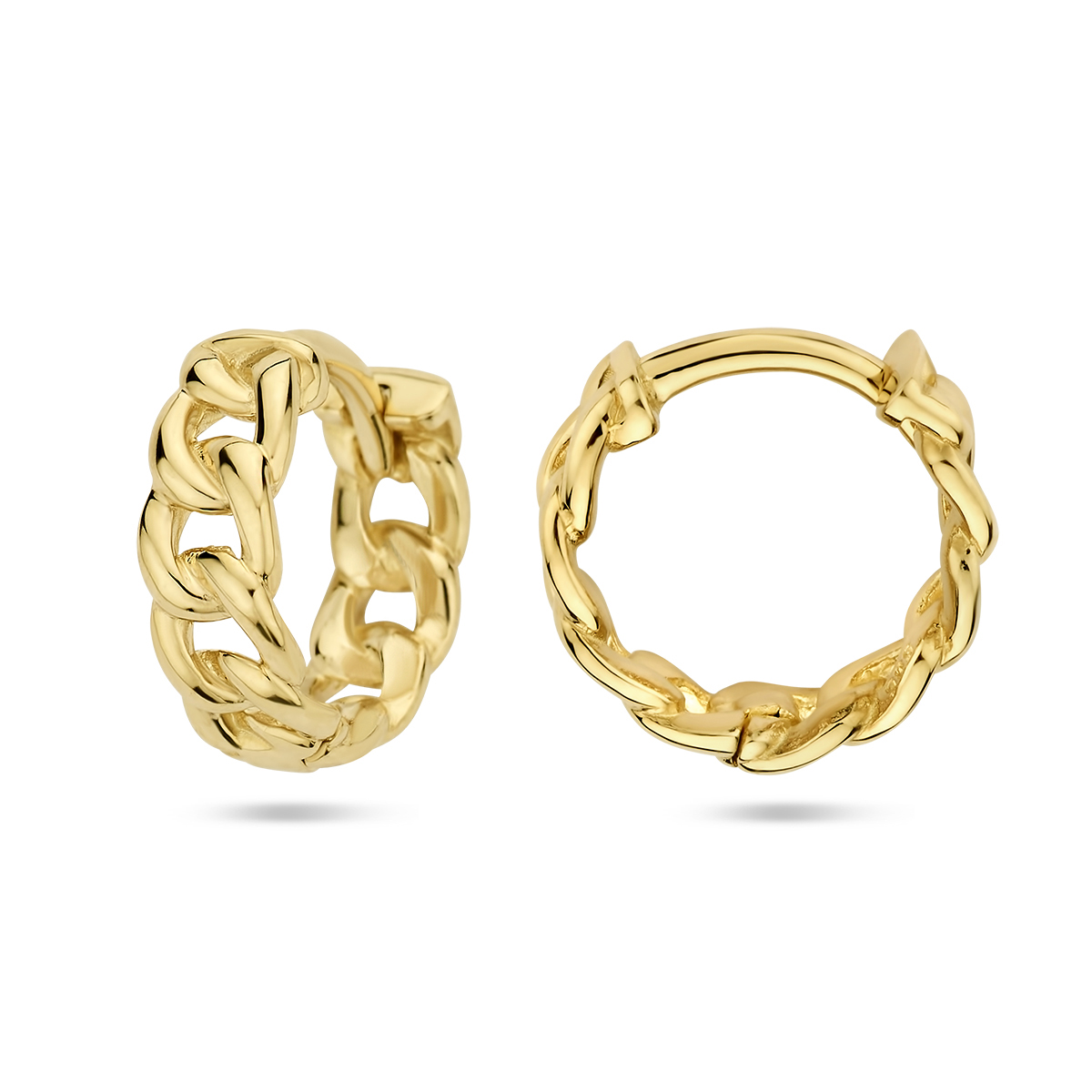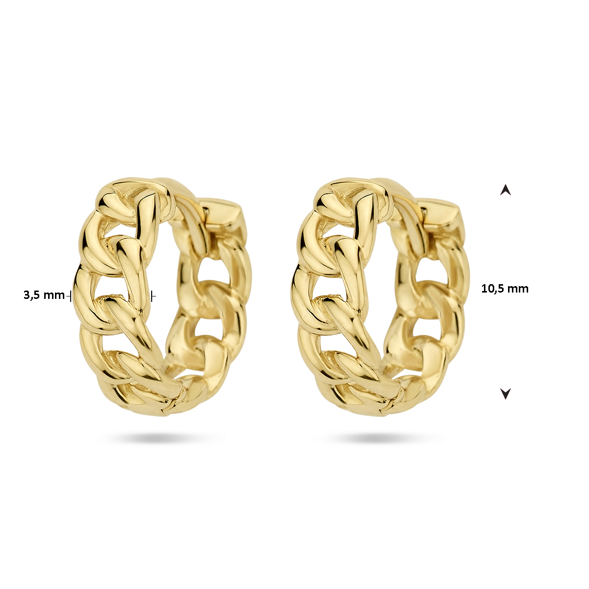 14k Geelgouden klapoorringen met een diameter van 10.5mm.