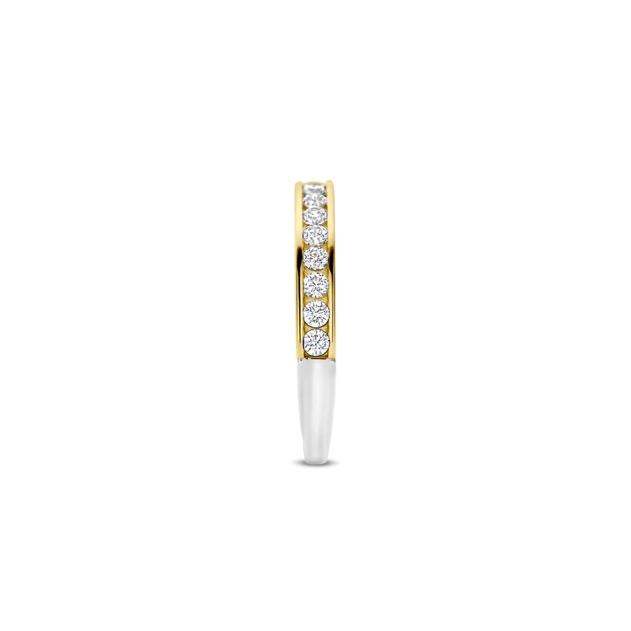Ervaar de luxe van vintage met de TI SENTO vergulde ring 12336ZY. Gemaakt van 925 sterling zilver en afgewerkt met glanzend geelgoudkleurig, straalt deze ring een tijdloze elegantie uit. Een oogverblindende rij witte zirkonia steentjes siert de ring en creëert een betoverend effect. Deze ring combineert klassiek design met een moderne flair. Het stralende gouden oppervlak en de sprankelende stenen brengen een vleugje retro glamour in je stijl. Versterk je look met dit verfijnde sieraad: draag het alleen voor een opvallend effect of combineer het met andere ringen voor een zorgvuldig samengestelde, vintage-geïnspireerde uitstraling. Met zorg vervaardigd voor gevoelige huid, biedt deze nikkelvrije en hypoallergene ring langdurig comfort en topkwaliteit.