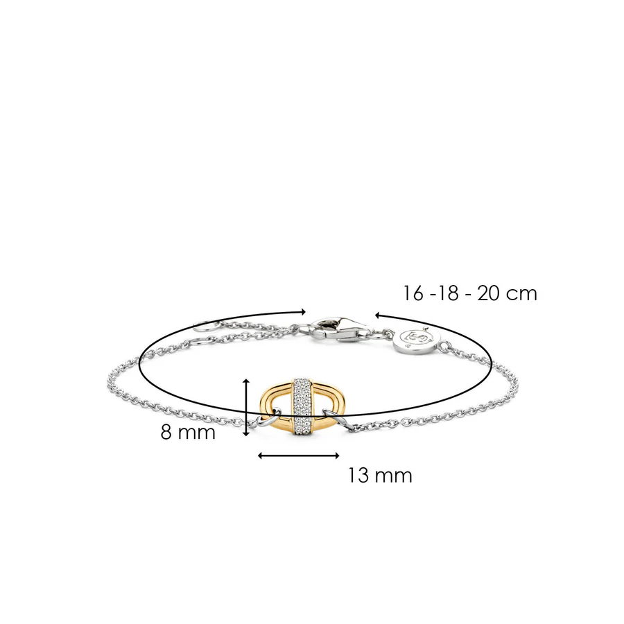 Finesse is waar ze voor staat. Deze armband staat delicaat in verbinding met de middelste glinsterende schakel. Haar gold plated schakels met witte zirkonia pavé zetting voegen magie toe aan je look. Haar zilver en witte zirkonia zetting creëren een verrassend geheel.