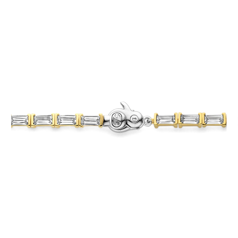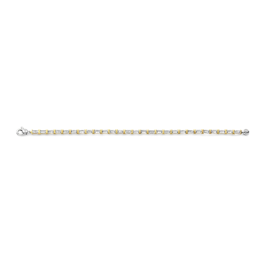 Ervaar ultieme luxe met deze TI SENTO vergulde zilveren tennisarmband 23041ZY, een meesterwerk van verfijning en glamour. Gemaakt van 925 sterling zilver en verguld beschikt deze armband over een sprankelende rij van smaragdgeslepen witte cubic zirconia stenen. De warme gloed van het goud voegt een vleugje luxe toe aan het betoverende ontwerp. Deze armband is een moderne interpretatie van een klassiek stijl, perfect voor de vrouw die een gedurfde indruk wil maken. De veelzijdigheid zorgt ervoor dat het sieraad moeiteloos van dag naar avond overgaat, en voegt een vleugje luxe toe aan elke outfit. Verrijk je dagelijkse look met dit verbluffende stuk. Draag het alleen voor een gedurfde uitstraling of stapel het met andere TI SENTO armbanden voor een samengestelde ensemble die vintage-geïnspireerde charme uitstraalt. Vakkundig vervaardigd voor gevoelige huiden, zorgt deze nikkelvrije en hypoallergene armband voor blijvend comfort en kwaliteit.
