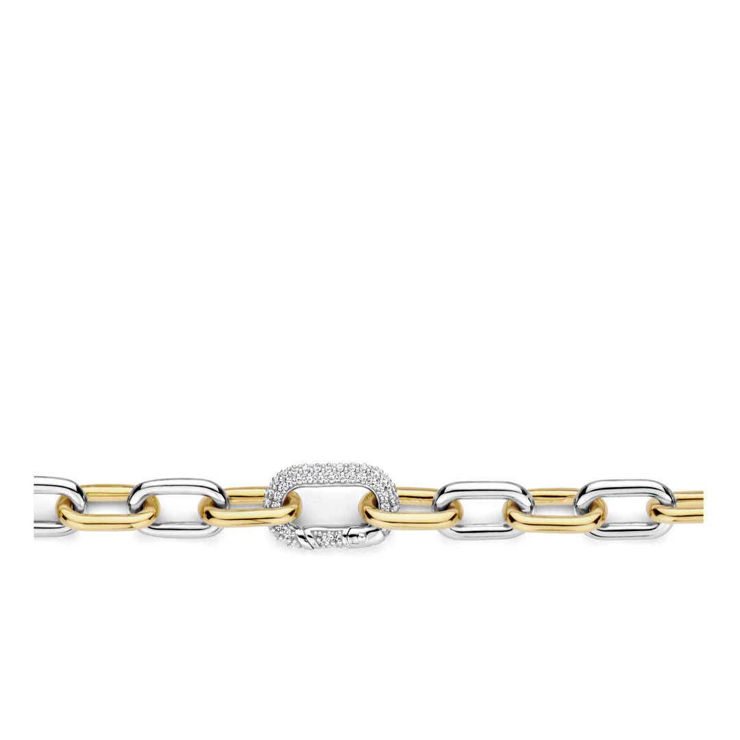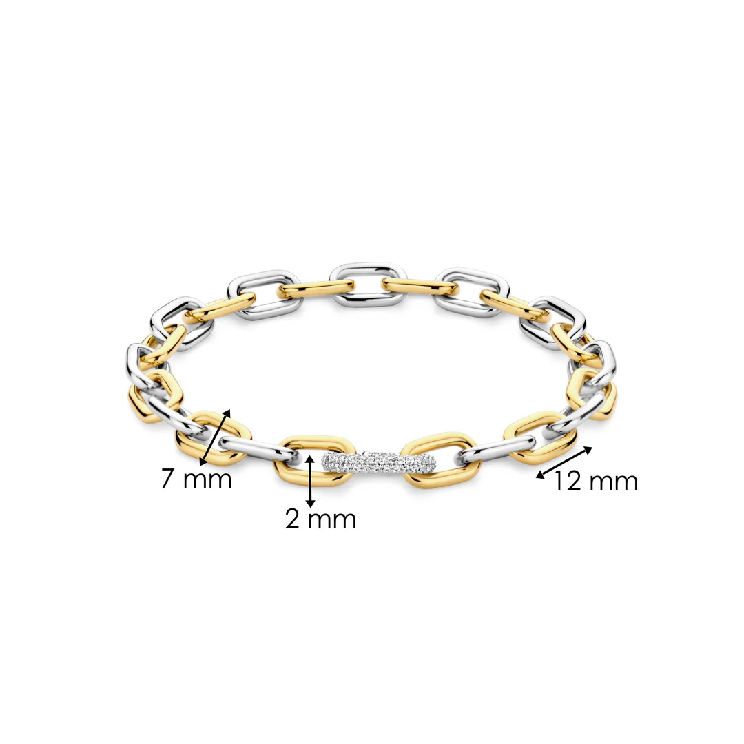 Ontdek de aantrekkingskracht van tijdloze elegantie met deze TI SENTO vergulde zilveren kettingarmband 23052ZY. Gemaakt van 925 sterling zilver en bedekt met glanzend geelgoudkleurig, beschikt deze armband over een betoverend samenspel van zilveren en gold-plated schakels, wat een vleugje moderne verfijning toevoegt aan dit klassieke ontwerp. Deze armband is een eerbetoon aan de kunst van fijne sieraden, met een veelzijdig accessoire dat elke outfit aanvult. Het kettingontwerp, een tijdloos symbool van kracht en veerkracht, voegt een vleugje gedurfde elegantie toe aan je pols. Verrijk je dagelijkse look met dit iconische sieraad. Draag het alleen voor een minimalistische statement of combineer het met andere TI SENTO armbanden voor een persoonlijke touch die zelfvertrouwen en aantrekkingskracht uitstraalt. Met zorg vervaardigd voor gevoelige huid, garandeert deze nikkelvrije en hypoallergene armband blijvend comfort en kwaliteit.