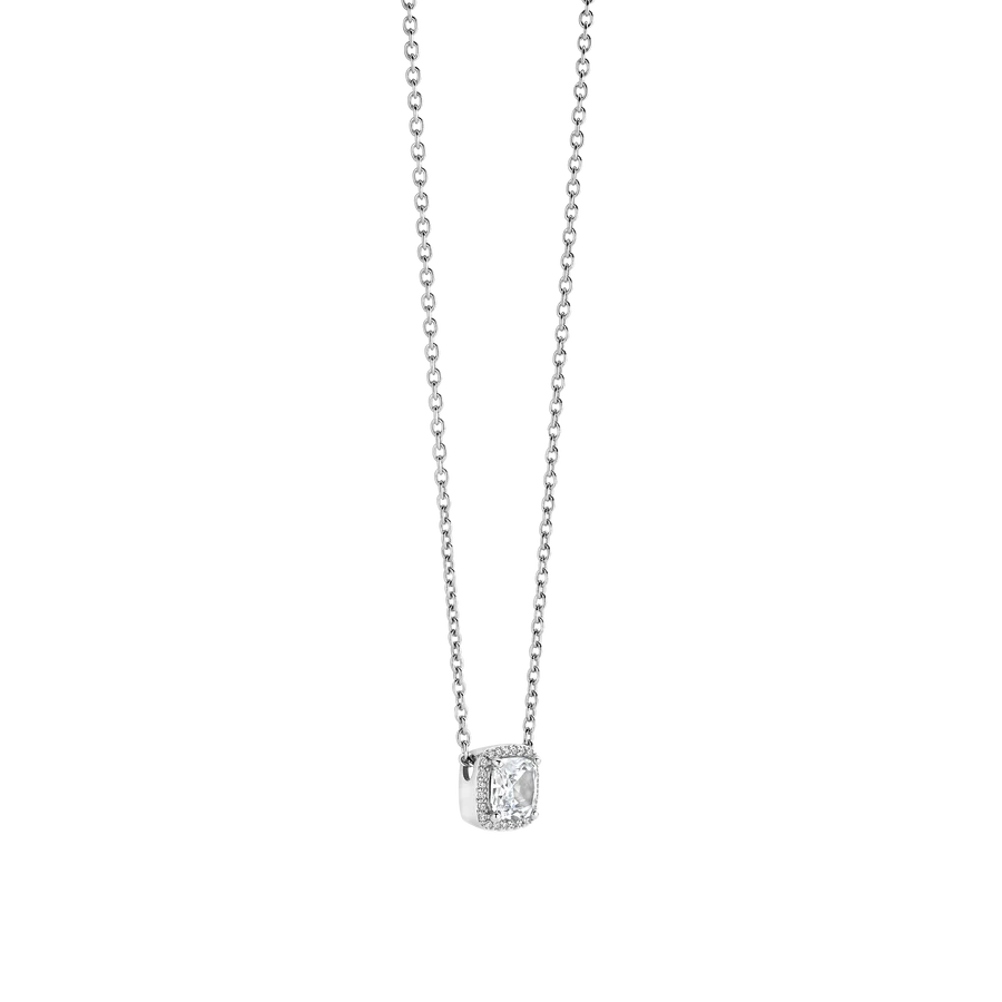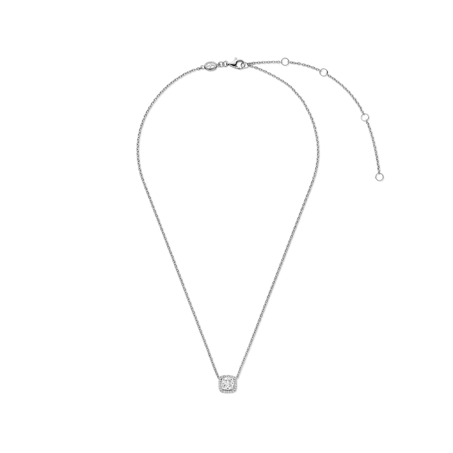 Ontdek dagelijkse verfijning met dit TI SENTO zilveren hanger-collier 34104ZI. Een kussengeslepen witte zirconia, omlijst door een fijne pavé van briljant geslepen stenen, vormt het stralende middelpunt van dit elegante ontwerp. De hanger is naadloos geïntegreerd in een fijn zilveren collier en creëert zo een zuiver, sierlijk silhouet dat subtiel op het sleutelbeen rust. Vervaardigd uit hoogwaardig 925 sterling zilver en afgewerkt met platinakleurige rhodium biedt dit collier langdurige glans en weerstand tegen verkleuring. Met een formaat van 8 mm maakt het middelpunt een verfijnde maar opvallende indruk, ideaal om zakelijke outfits een vleugje fonkeling te geven of je favoriete sieradenstack te verrijken. Dit tijdloze collier vormt de brug tussen solitaire sieraden en halo-ontwerpen, waardoor het een veelzijdige keuze is voor cadeaus, bruidsstyling of dagelijks gebruik. Nikkelvrij en hypoallergeen, het garandeert blijvend comfort en verfijnde elegantie in elk moment.